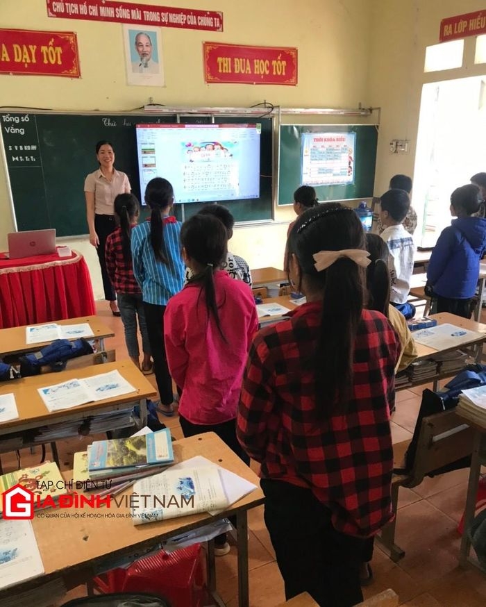 Cô giáo Đinh Thị Hương kể: “Sau khi ra trường, tôi được phân công về đây dạy học, tới nay cũng đã hơn chục năm bám bản. Các em học sinh 100% là dân tộc thiểu số Tày, Nùng. Trẻ không được giao tiếp với xã hội nên vốn kiến thức về tiếng Kinh còn hạn chế. Giáo viên chúng tôi phải học thêm luôn cả tiếng của các dân tộc để có thể dạy các cháu”.