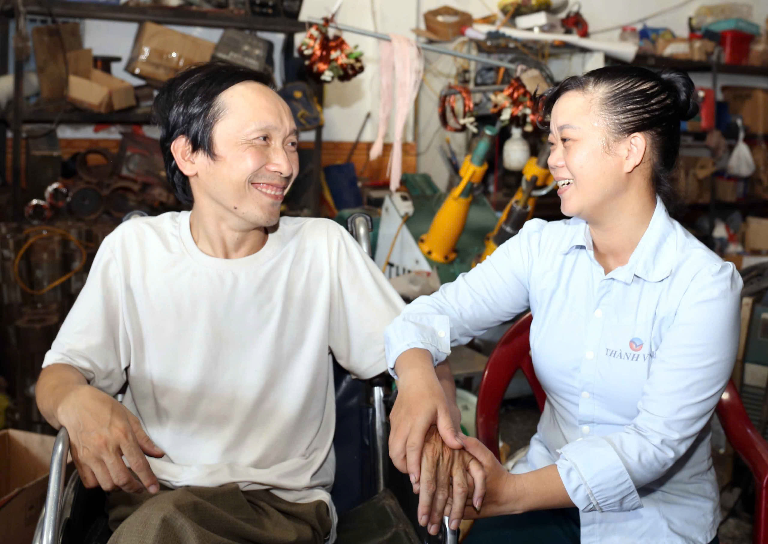 Khi đã ổn định được cuộc sống của gia đình, vợ chồng anh Thành vẫn luôn dành sự đồng cảm với những người cùng hoàn cảnh. Anh chị sẵn sàng hỗ trợ đào tạo miễn phí cho nhiều người khuyết tật, trẻ mồ côi trong những năm qua để họ có được việc làm và thu nhập ổn định. Trong số đó, nhiều người vẫn nhắc nhớ đến chàng trai Vi Văn Dũng (SN 1996).