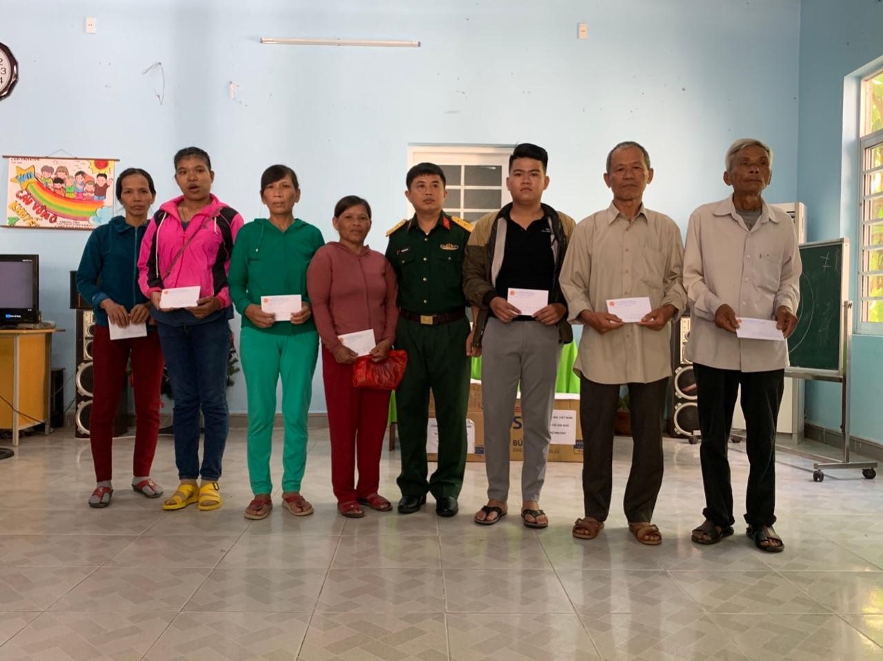 Trung tá Trương Hồng Việt, Đảng ủy viên, Chủ nhiệm Chính trị Công ty TNHH MTV Hữu nghị Việt -Lào Quân khu 5 trao tiền hỗ trợ thường xuyên cho NNCĐDC