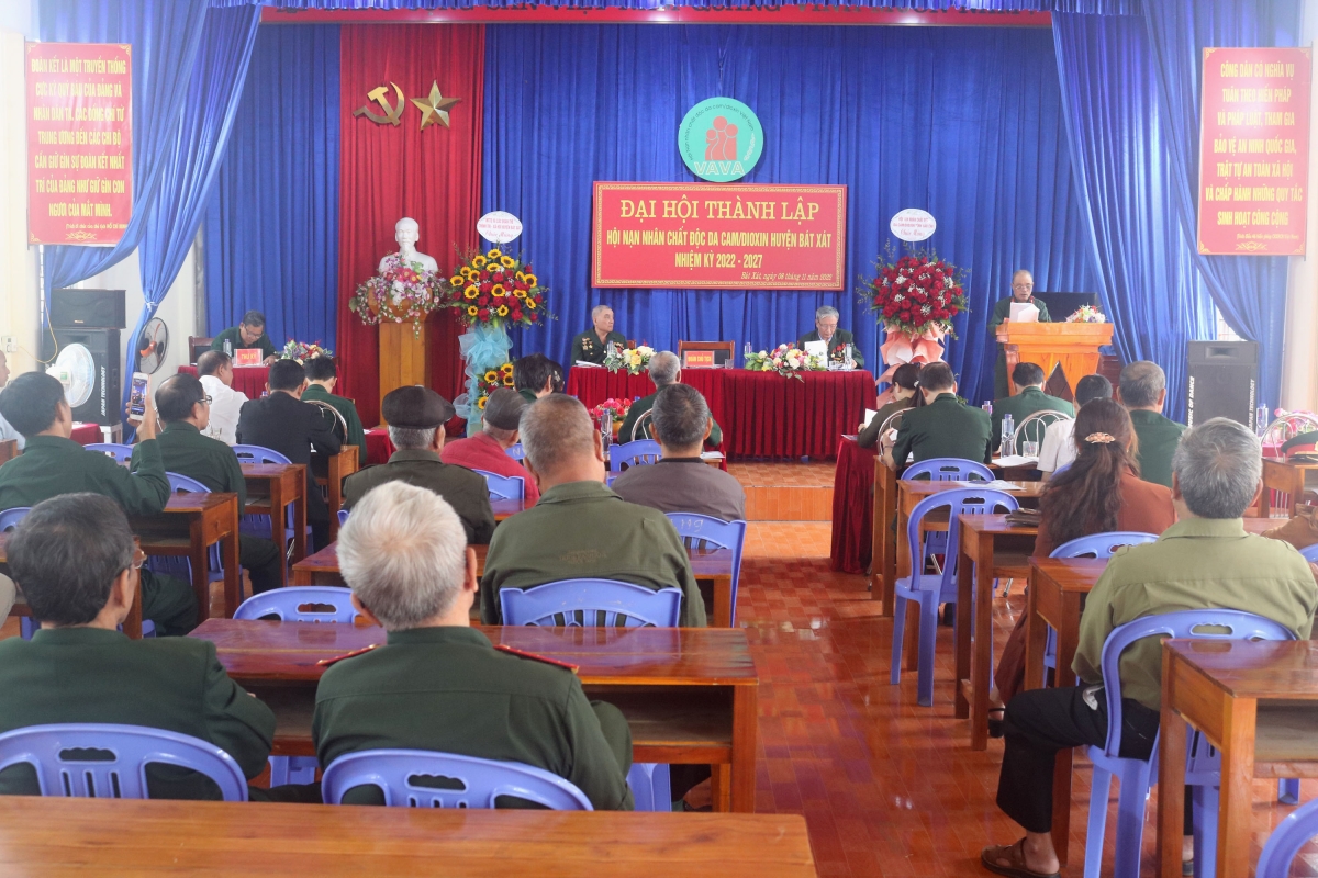 Tại Đại hội, các đại biểu đã được nghe Quyết định số 1722/QĐ-UBND ngày 09/8/2022 của UBND tỉnh Lào Cai về việc cho phép thành lập Hội Nạn nhân chất độc da cam/dioxin huyện Bát Xát. Theo đó, Hội Nạn nhân chất độc da cam/dioxin huyện Bát Xát được thành lập với mục tiêu chủ yếu là: tập hợp, đoàn kết, bảo vệ quyền, lợi ích hợp pháp của hội viên, hỗ trợ nhau hoạt động có hiệu quả, góp phần vào việc phát triển kinh tế - xã hội của địa phương; phát huy khả năng tham gia hoạt động xã hội, chăm lo đời sống, khích lệ, động viên các nạn nhân chất độc da cam khắc phục khó khăn vươn lên trong cuộc sống.