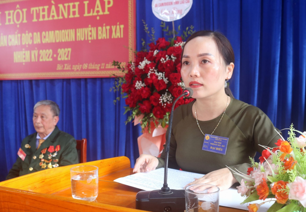Phát biểu tại Đại hội, đồng chí Bùi Sỹ Thu, Ủy viên Trung ương hội, Chủ tịch Hội Nạn nhân chất độc da cam/dioxin tỉnh Lào Cai; đồng chí Sùng Hồng Mai, Thường vụ Huyện ủy, phó Chủ tịch UBND huyện Bát Xát đã ghi nhận những kết quả mà Ban Vận động Hội Nạn nhân chất độc da cam/dioxin huyện đã đạt được trong thời gian qua. Đồng thời, tin tưởng trong nhiệm kỳ tới, Hội Nạn nhân chất độc da cam/dioxin huyện sẽ làm tốt công tác phối hợp, tuyên truyền giáo dục nâng cao nhận thức, trách nhiệm của toàn xã hội cùng chung tay chăm sóc, xoa dịu nỗi đau da cam. Vận động các tổ chức, cá nhân, cơ quan doanh nghiệp, các nhà hảo tâm và cộng động xã hội quan tâm ủng hộ, giúp đỡ các nạn nhân chất độc da cam. Tiếp tục củng cố, nâng cao chất lượng, hiệu quả hoạt động của tổ chức Hội. Tăng cường đoàn kết, thống nhất, tạo sự đồng thuận cao trong nhận thức và hành động; tiếp tục đổi mới nội dung, phương thức hoạt động, đưa tổ chức Hội ngày càng phát triển.