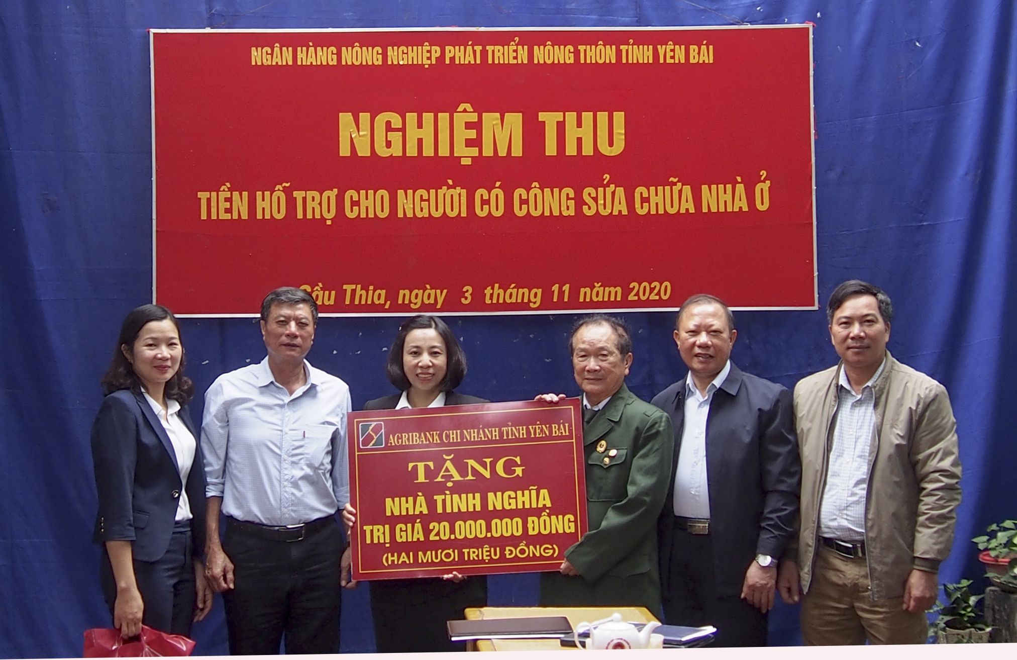 Lãnh đạo Tỉnh hội Yên Bái tiếp nhận tiền ủng hộ của Ngân hàng Nông nghiệp và Phát triển nông thôn.