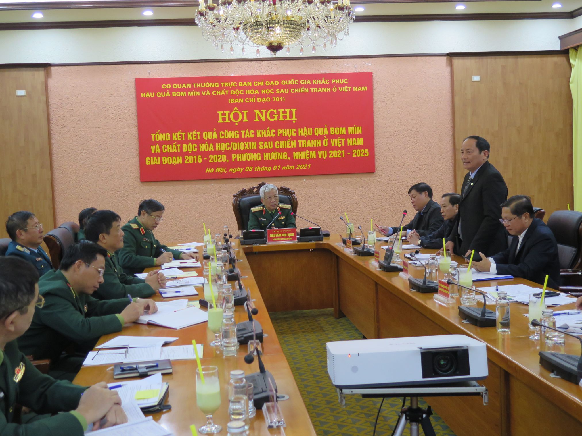 Phát biểu kết luận Hội nghị, Thượng tướng Nguyễn Chí Vịnh, Thứ trưởng Bộ Quốc phòng - Trưởng Cơ quan Thường trực Ban Chỉ đạo 701 yêu cầu Ban Chỉ đạo 701 tiếp tục thực hiện tốt Chỉ thị số 43- CT/TW, Chỉ thị số 14-CT/TW của Ban Bí thư Trung ương; Nghị định số 18/NĐ-CP của Chính phủ, nhằm phát huy vai trò, trách nhiệm của các ban, bộ, ngành, địa phương thúc đẩy mạnh mẽ công tác khắc phục hậu quả bom mìn và chất độc hóa học sau chiến tranh ở Việt Nam, nhằm đạt được những mục tiêu, yêu cầu đề ra.