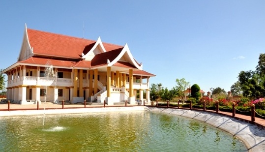 Khu lưu niệm có ao cá Bác Hồ và nhà trưng bày các hiện vật về Bác và mối quan hệ đặc biệt Lào-Việt Nam