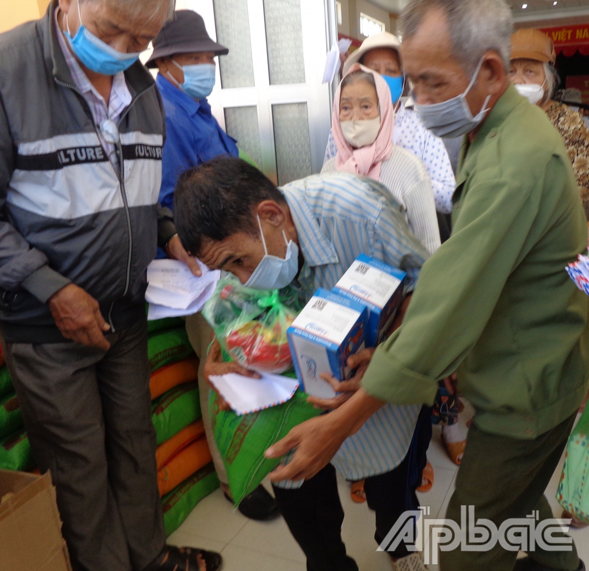 | Cán bộ Hội huyện Gò Công Đông trao quà cho NNCĐDC xã Tân Tây. |