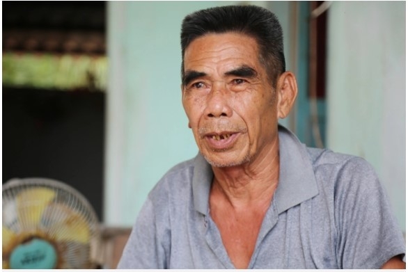 Cố gượng ngồi dậy để uống nước, ông Nguyễn Văn Hiếu (71 tuổi, cha anh Tới) cho biết cũng vì ông đau ốm khiến hai vợ chồng anh Tới thêm phần vất vả. 6 năm trước, sau cơn tai biến, ông Hiếu chỉ còn nằm một chỗ, dù được con trai đưa đi chạy chữa, khi nào khỏe, ông cũng chỉ có thể chống gậy đi chập chững quanh nhà. Nhìn thấy vợ chồng con trai khổ càng thêm khổ, ông Hiếu chỉ biết trách bản thân mình.