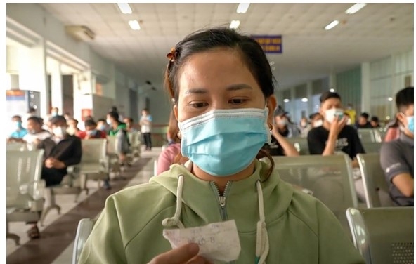 "Tôi đến đây lúc 7h30 để chờ mua vé, sau khi lấy số thứ tự và ngồi chờ tới lượt. Do tôi đã đăng ký qua mạng rồi và bây giờ đến để thanh toán lấy vé. Việc mua vé qua hình thức này cũng thuận tiện hơn, giảm được nhiều thời gian. Tôi mua vé về Quảng Ngãi vào ngày 29 Tết, do công việc bận rộn nên về hơi trễ", chị Trần Thị Lệ An (35 tuổi) chia sẻ.