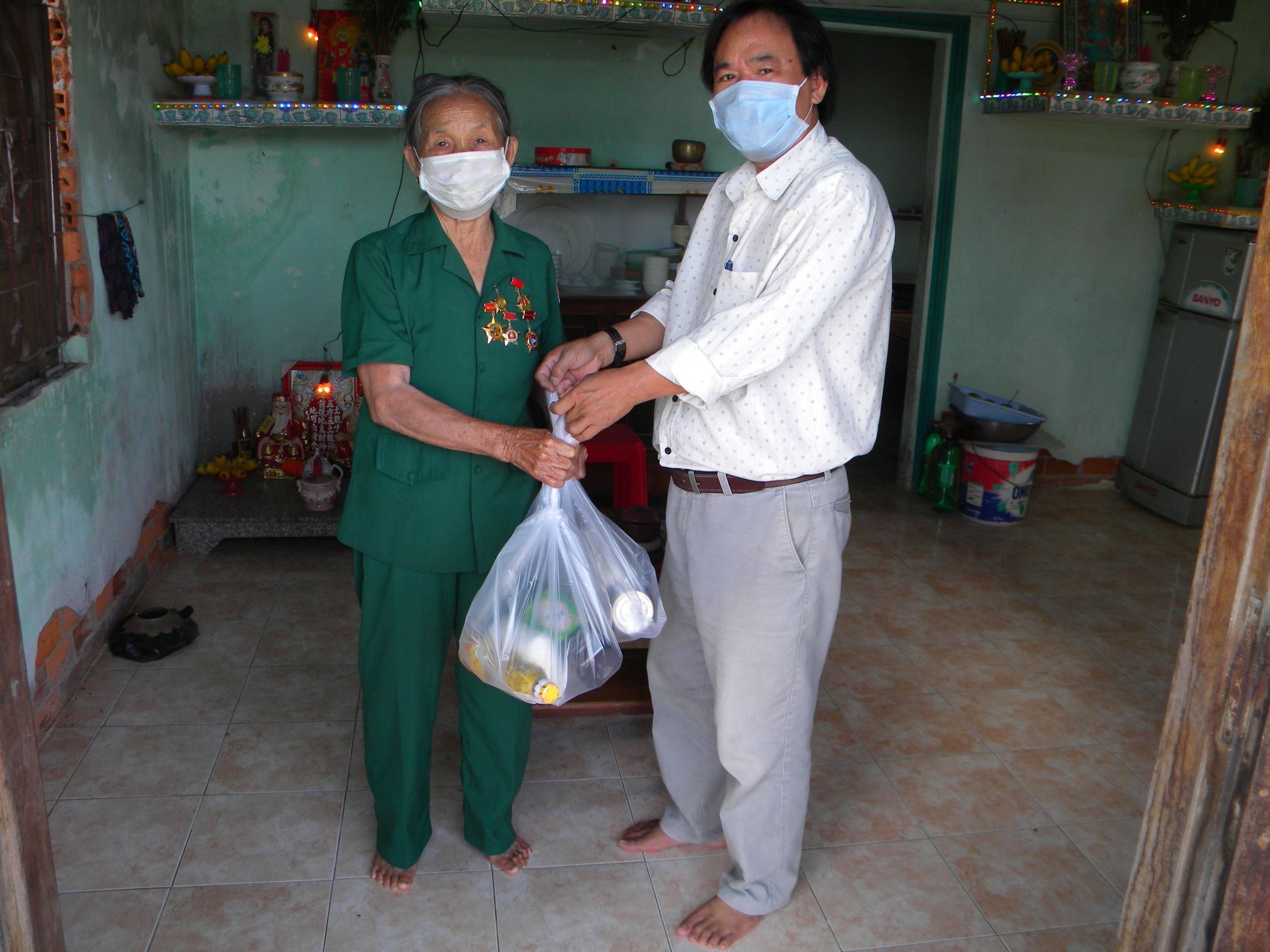 Chủ tịch Hội CCB, Hồ Văn Tòng tặng nhu yếu phẩm cho hội viên CCB phường Mũi Né