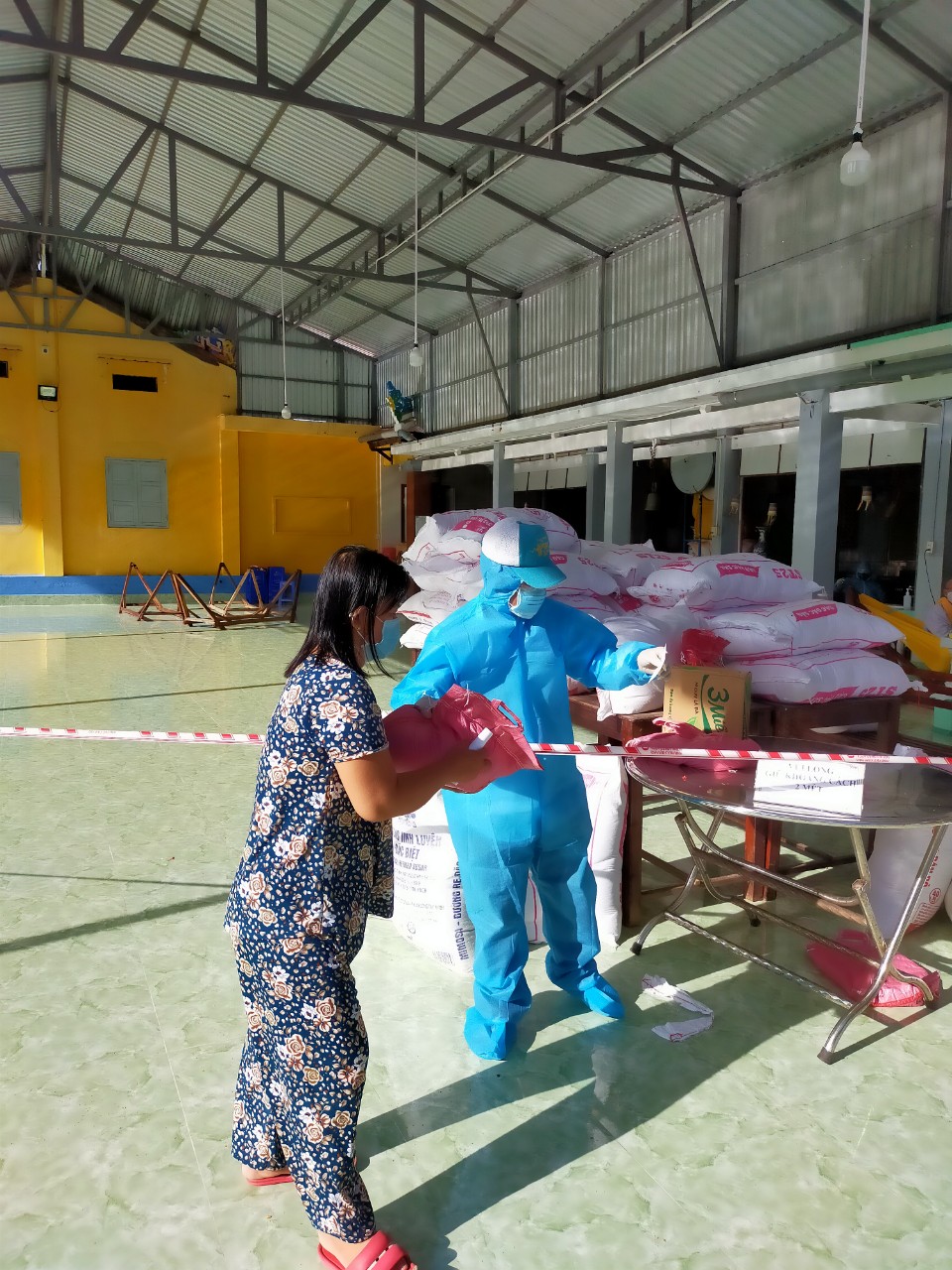 Lực lượng Y tế phường Mũi Né tặng thuốc, nhu yếu phẩm cho người dân nơi phong tỏa