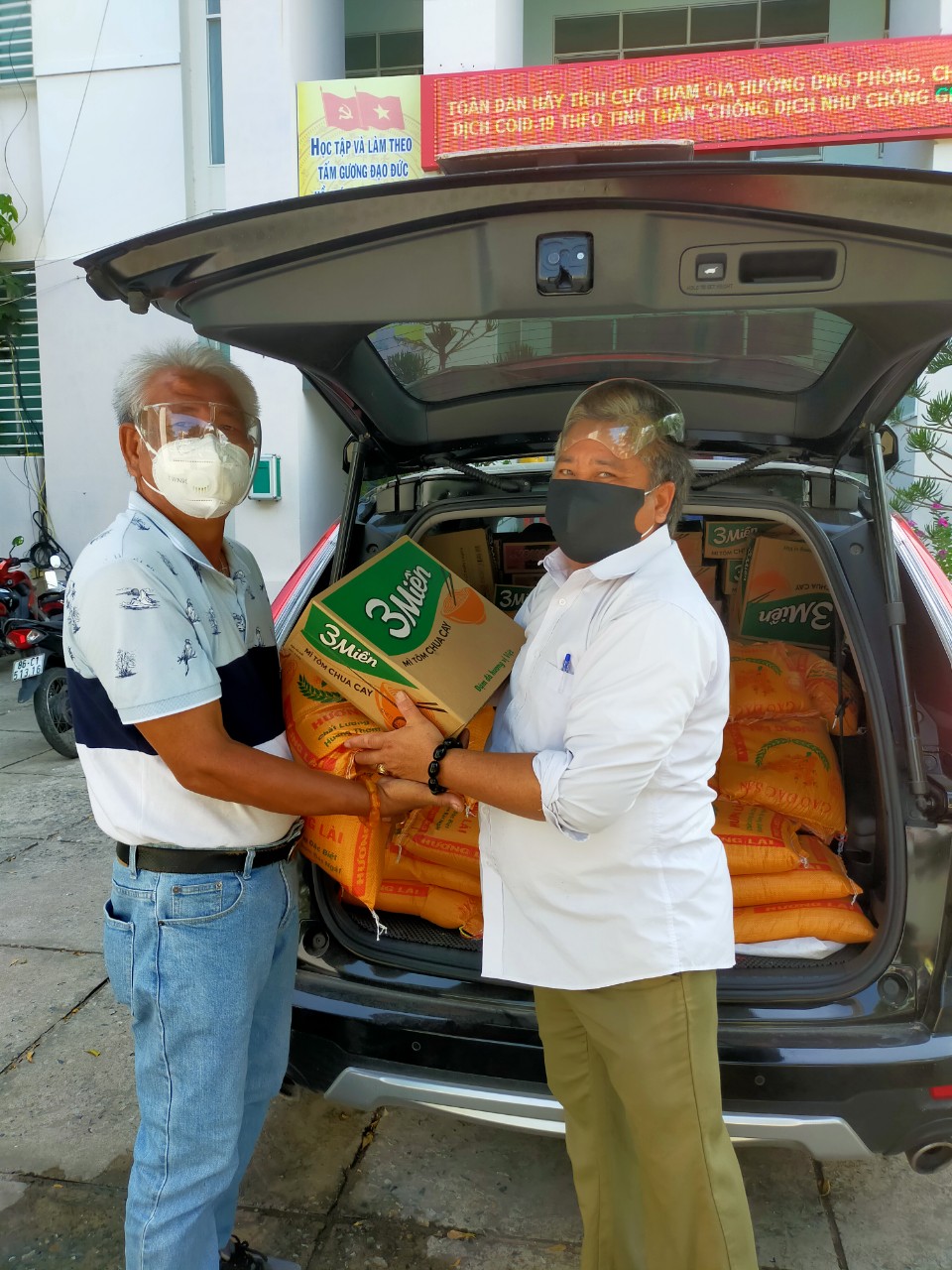 Cựu chiến binh Hồ Văn Tòng, trao tặng UBND phường Mũi Né 5,5 tấn gạo