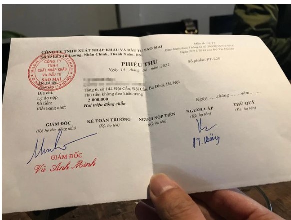 Nộp số tiền 2 triệu đồng, anh D. tìm hiểu nội quy của toà nhà thì không hề nhắc đến hành vi phải đeo khẩu trang khi di chuyển trong toà nhà này. Quá trình nộp phạt, anh đã đề nghị đại diện Ban Quản lý toà nhà Sao Mai cung cấp biên lai hay biên bản xử phạt đi kèm nhưng không được chấp thuận.