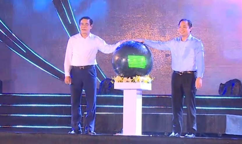 Bí thư tỉnh ủy Hoàng Trung Dũng (phải) và Chủ tịch UBND tỉnh Võ Trọng Hải kích hoạt du lịch biển Hà Tĩnh 2022