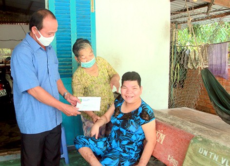 Nhận phần quà trị giá 400.000 đồng, bà Đặng Thị Mành, ở ấp Phương Quới B, xã Phương Bình, huyện Phụng Hiệp, vui mừng chia sẻ: “Trước đây, cả gia đình đều sống vào nguồn thu nhập từ việc bán bánh bò dạo của tôi. Nhưng bây giờ dịch bệnh không buôn bán được nên gia đình gặp rất nhiều khó khăn. Cũng nhờ có chế độ trợ cấp dành cho nạn nhân chất độc da cam và người nuôi dưỡng, sự quan tâm của hội, của chính quyền địa phương mà gia đình tôi vượt qua được giai đoạn này”. Được biết, chị Nguyễn Thị Cẩm Thu, con gái bà Mành năm nay đã 26 tuổi, nhưng do bị nhiễm chất độc da cam nên mọi sinh hoạt đều phải phụ thuộc vào người thân.