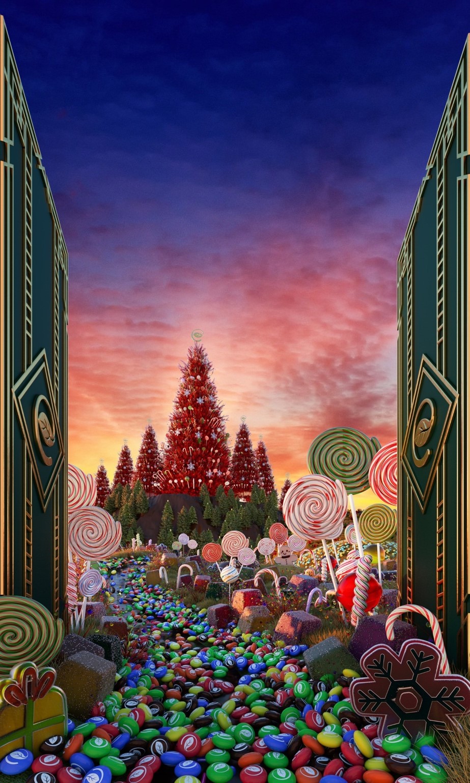 Sát ngôi làng kẹo ngọt là rừng thông đỏ khổng lồ; Rừng thông được tạo thành từ hàng chục cây thông đỏ có chiều cao bằng cả ngôi nhà; Toàn bộ lá thông được tạo màu đỏ rực, kết hợp cùng hàng chục nghìn trái châu, vòng nguyệt quế huyền ảo giữa không gian đầy tuyết trắng và kẹo ngọt;