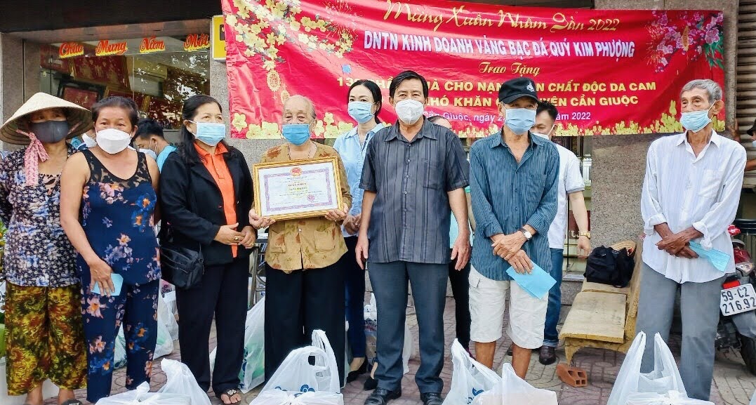 Những đơn vị nhiều năm hỗ trợ quà tết cho nạn nhân chất độc da cam của huyện như Hội Bảo trợ bệnh nhân nghèo Huỳnh Mai Thành phố Hồ Chí Minh tặng 96 phần quà mỗi phần trị giá 500 ngàn đồng, gồm nhu yếu phẩm và 200 ngàn đồng tiền mặt; Nhóm Từ thiện Trần Tình, Quận 6, Thành phố Hồ Chí Minh tặng 100 phần quà, mỗi phần trị giá 500 ngàn đồng gồm: nhu yếu phẩm và 100 ngàn đồng tiền mặt; Lương y Nguyễn Trần Lê, bà Võ Thị Hiền, Doanh nghiệp Kinh doanh Vàng bạc đá quý Kim Phượng (thị trấn Cần Giuộc) và ông Bảo Đăng Quang (xã Đa Phước huyện Bình Chánh) tặng 130 phần quà cho nạn nhân chất độc da cam, hộ dân khó khăn của thị trấn Cần Giuộc, Mỹ Lộc, công chức, người lao động thu nhập thấp của Bệnh viện Đa Khoa Cần Giuộc mỗi phần quà trị giá 500 ngàn đồng.