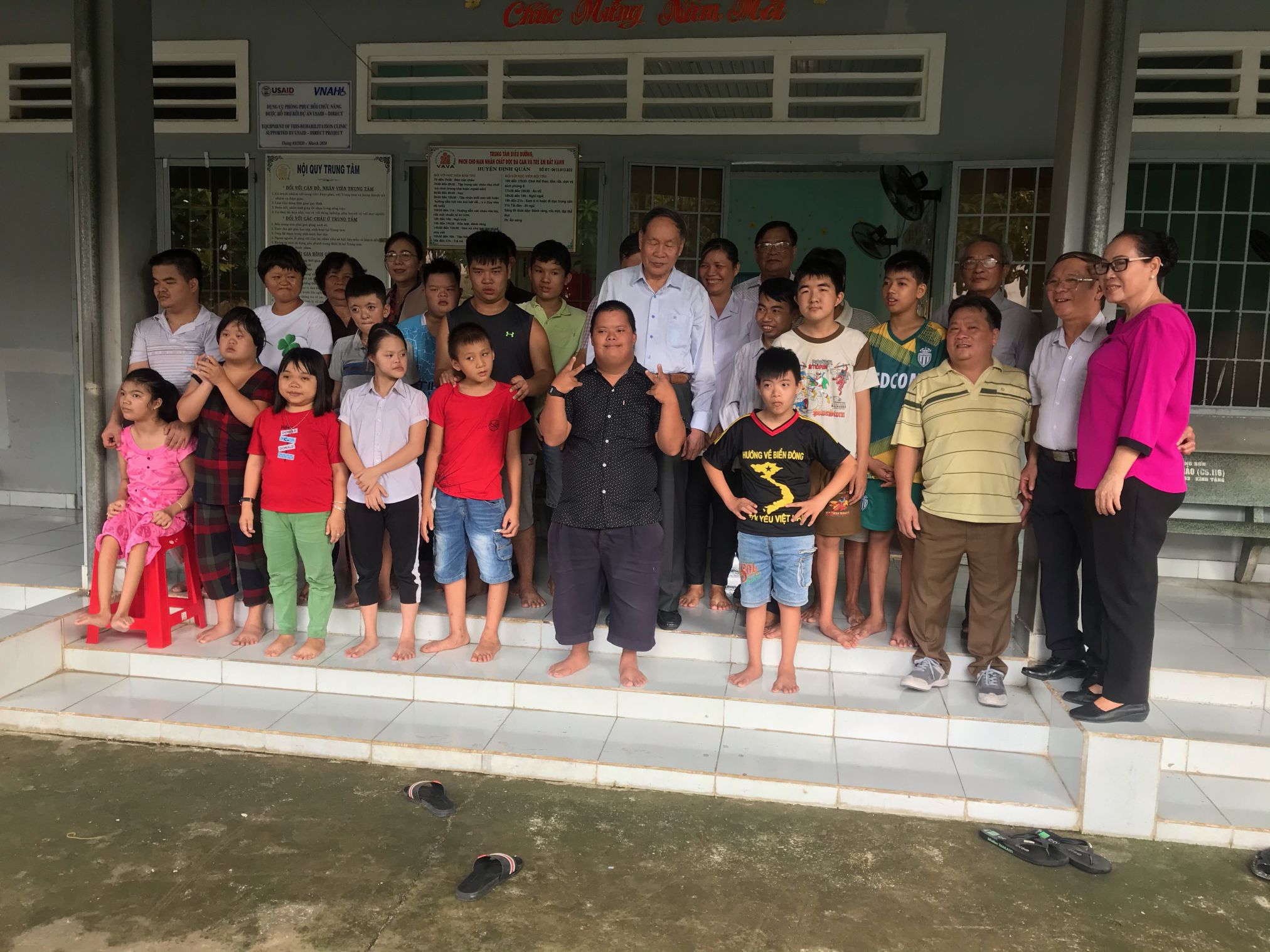 Đoàn chụp ảnh với nhân viên và các cháu NNCĐDC tại Trung tâm.