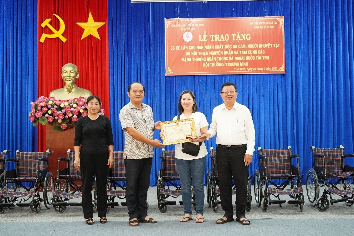 Ngày 30/03/2025, Hội NNCĐDC/dioxin huyện Thới Bình tỉnh Cà Mau cùng nhà tài trợ tổ chức trao 55 xe lăn, với tổng trị giá 82,5 triệu đồng (mỗi chiếc trị giá 1,5 triệu đồng) cho nạn nhân chất độc da cam, người khuyết tật trên địa bàn là quà tài trợ của Hội Thiện nguyện “Nhẫn và Tâm” cùng các mạnh thường quân khác. Dự trao xe có ông Đặng Văn Mỹ, Chủ tịch Hội NNCĐDC/dioxin tỉnh Cà Mau; ông Trần Minh Nhân, PCT UBND huyện Thới Bình; ông Đỗ Hữu Lực, Chủ tịch Hội NNCĐDC/dioxin huyện Thới Bình; Bà Trương Thể Dinh, Hội trưởng Hội Thiện nguyện “Nhẫn và Tâm” cùng đông đảo bà con trên địa bàn tham dự.