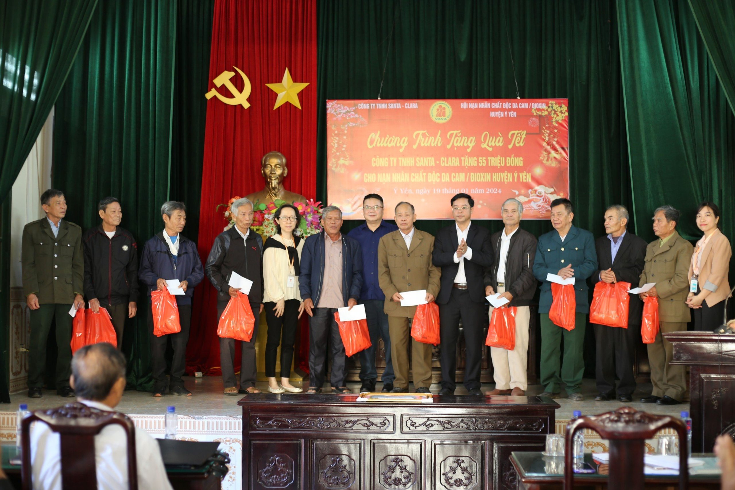 Tại Chương trình, các cán bộ lãnh đạo huyện và Ban Giám đốc Công ty đã ân cần thăm hỏi sức khoẻ, tình hình đời sống và trực tiếp trao tặng quà đến các nạn nhân chất độc da cam. Đây là những phần quà ý nghĩa nhằm tri ân đối với những người có công với cách mạng, động viên, chia sẻ đối với gia đình các nạn nhân chất độc da cam có hoàn cảnh khó khăn nhân dịp Tết đến Xuân về. Hoạt động này khẳng định tinh thần “Uống nước nhớ nguồn”, “Tương thân tương ái” của Công ty TNHH Santa Clara nói riêng cũng như thể hiện sự trách nhiệm, quan tâm, chia sẻ của cộng đồng xã hội đến với nạn nhân chất độc da cam giúp họ phần nào vơi đi nỗi đau, đón Tết Giáp Thìn vui tươi, đầm ấm.