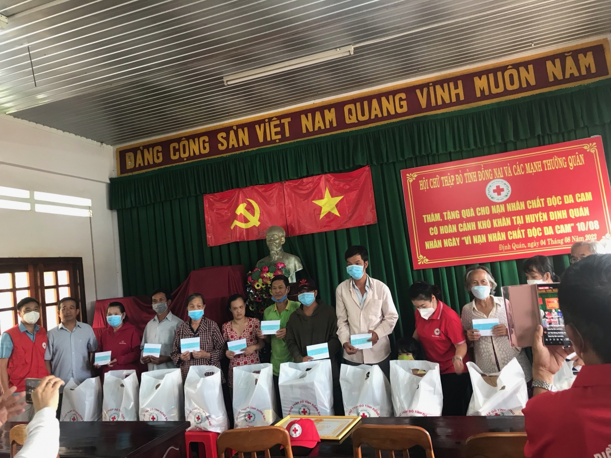 Nhân Kỷ niệm 61 năm ngày Vì nạn nhân chất độc da cam (10/8/1961-10/8/2022), sáng 04/8/2022, Hội Nạn nhân chất độc da cam/dioxin tỉnh Đồng Nai phối hợp với Hội Chữ Thập đỏ tỉnh và Hội Nạn nhân chất độc da cam/dioxin huyện Định Quán trao tặng 52 phần quà cho nạn nhân chất độc da cam của 9 xã: Gia Canh, Thanh Sơn, Ngọc Định, Phú Ngọc, Phú Hòa, Phú Tân, Phú Lợi, Phú Vinh và thị trấn Định Quán, mỗi phần quà trị giá 500.000đ, với tổng giá trị 27.000.000đ, trong đó có 2 phần quà bằng tiền mặt 1 triệu đồng được trao trực tiếp tại gia đình nạn nhân.