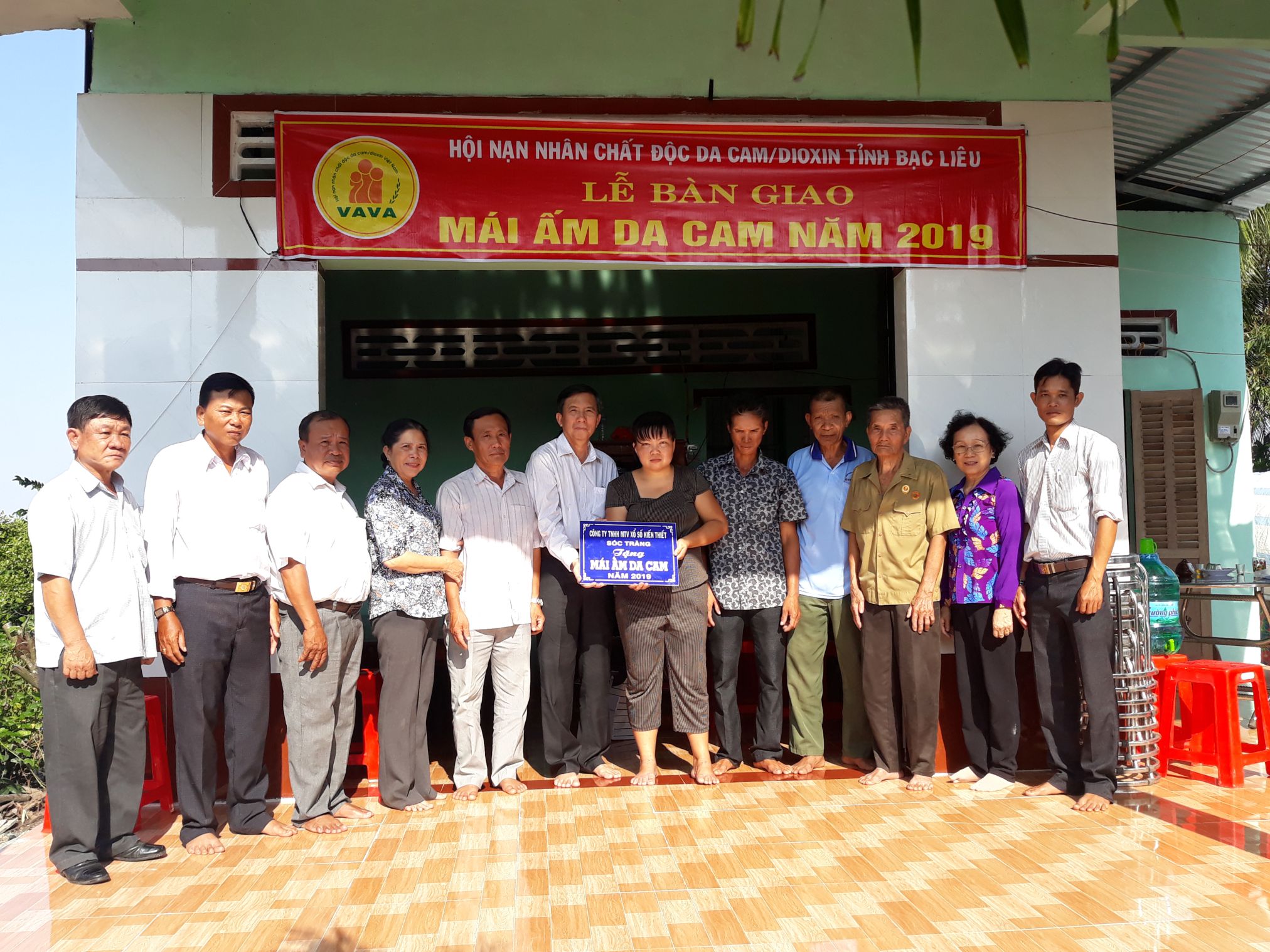Từ tháng 9 đến tháng 11/2019 Hội NNCĐDC/dioxin tỉnh Bạc Liêu đã tổ chức xây dựng và bàn giao 07 căn nhà “mái ấm da cam” cho các hộ NNCĐDC trong tỉnh có hoàn cảnh đặc biệt khó khăn về nhà ở cụ thể gồm: (1) Bà Nguyễn Thị Trung sinh năm 1976, ấp 21 xã Phong Tân, thị xã Giá Rai; (2) Bà Trương Thị Giàu sinh năm 1980, ấp Vĩnh Thạnh, xã Vĩnh Lộc, huyện Hồng Dân; (3) Bà Nguyễn Chí Lưỡng sinh năm 1967, ấp Bắc Hưng, xã Vĩnh Hưng A, huyện Vĩnh Lợi; (4) Bà Dương Kim Ngà sinh năm 1981, ấp Trà Co, xã Minh Diệu, huyện Hòa Bình; (5) Ông Nguyễn Văn Phúc sinh năm 1956, ấp Kinh Xáng, xã Định Thành, huyện Đông Hải; (6) Bà Lê Thúy Kiều sinh năm 1980, ấp 14, xã Vĩnh Mỹ B, huyện Hòa Bình; (7) Bà Huỳnh Thị Hoa sinh năm 1950 ấp 20, xã Phong Tân, thị xã Giá Rai, các căn nhà trên được xây dựng trên phần đất của gia đình với tổng trị giá là 707.900.000đ. Đây là nguồn tài trợ của Công ty Xi măng Long Sơn tỉnh Thanh Hóa 150.000.000đ, Công ty Xổ số kiến thiết tỉnh Sóc Trăng 100.000.000đ, Công Ty TNHH Giống Thủy sản Đông Hải Bạc Liêu 40.000.000đ số còn lại là Quỹ NNCĐDC/dioxin Tỉnh hội, đối ứng của Hội huyện và đóng góp thêm của thân nhân gia đình.
