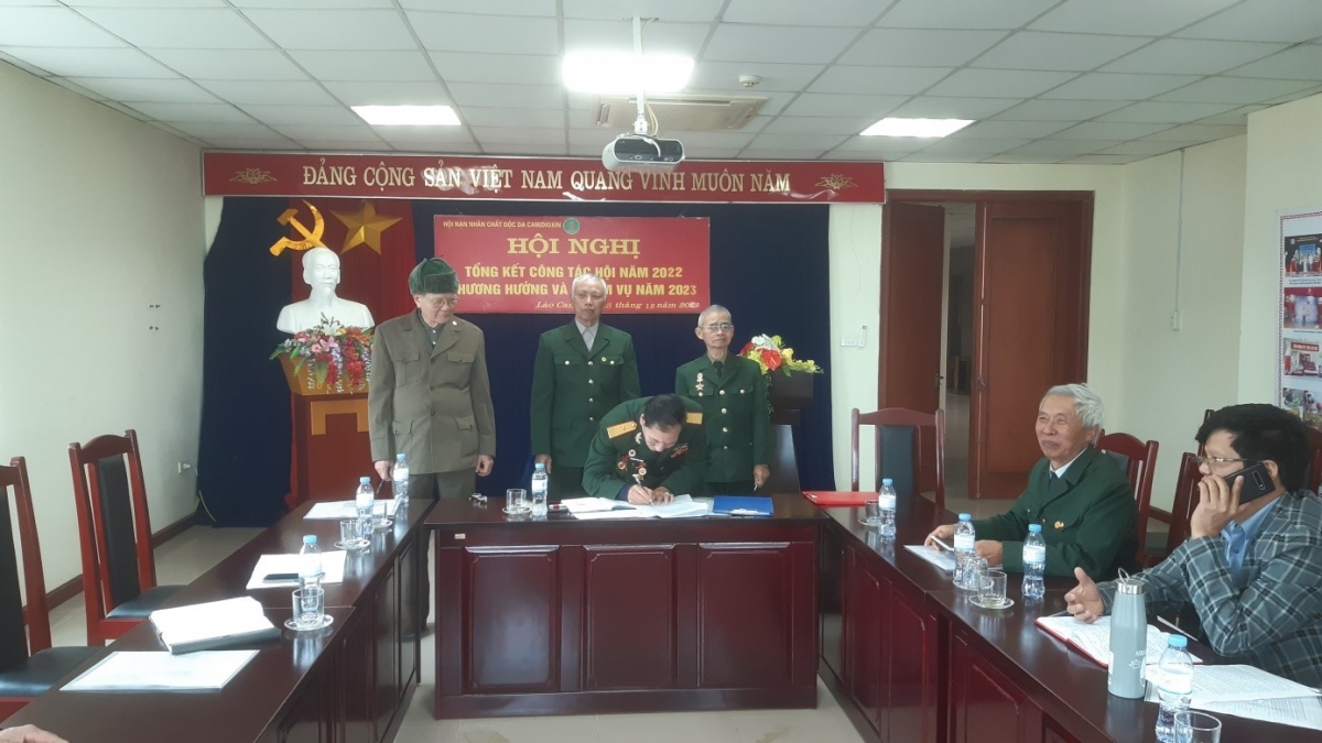 Năm 2022, Hội NNCĐDC/dioxin tỉnh lập kế hoạch hoạt động trình UBND tỉnh phê duyệt và tổ chức thực hiện, duy trì nghiêm chế độ hoạt động của tổ chức Hội các cấp; phối hợp với các ngành liên quan làm tốt công tác chăm sóc, giúp đỡ nạn nhân; công tác xây dựng phát triển tổ chức hội đã được quan tâm và có được kết quả tích cực, chỉ đạo Hội cấp huyện đại hội nhiệm kỳ theo đúng kế hoạch; thành lập mới được 2 Hội. Làm tốt công tác tuyên truyền về chủ trương của Đảng, chính sách pháp luật của Nhà nước; phong trào vận động nguồn lực và hoạt động chăm lo cho nạn nhân; viết và được đăng trên các phương tiện thông tin đại chúng 30 tin, bài, phóng sự về NNCĐDC; vận động từ các nguồn lực được trên 1.500 suất quà, trị giá hơn 1 tỷ đồng, ủng hộ, giúp đỡ nạn nhân trong dịp lễ, tết; hỗ trợ kinh phí sửa chữa 4 nhà cho nạn nhân có hoàn cảnh khó khăn trị giá 170 triệu đồng; trao tặng 11 xe lăn; phối hợp với ngành y tế khám sức khỏe cho 300 NNCĐDC. Các nhiệm vụ do Tỉnh ủy, UBND tỉnh giao đều thực hiện và hoàn thành tốt. Tiêu biểu trong thực hiện công tác năm 2022 có các Hội: thị xã Sa Pa, huyện Bảo Yên, Văn Bàn và huyện Bát Xát… Năm 2022 có 30 tập thể và cá nhân tiêu biểu được cấp tỉnh, huyện khen thưởng.