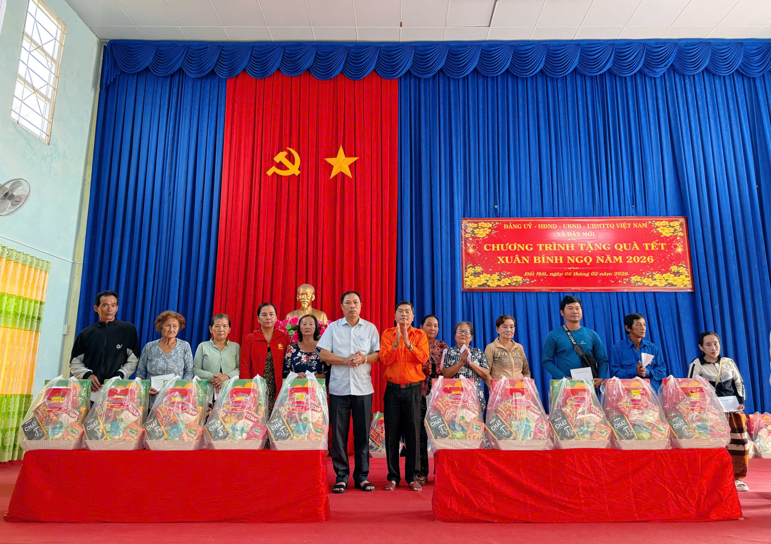 Nhận rõ thực trạng đó, dưới sự lãnh đạo của cấp ủy, chính quyền và Hội cấp trên, Hội Nạn nhân chất độc da cam/dioxin xã Đất Mới đã nêu cao tinh thần trách nhiệm, nỗ lực hoàn thành tốt nhiệm vụ được giao. Nhân dịp Tết Nguyên đán Bính Ngọ 2026, với tấm lòng nhân ái, sẻ chia và chăm lo đời sống cho các nạn nhân, đặc biệt là những trường hợp có hoàn cảnh khó khăn, ngày 06/02/2026 tại Trung tâm Văn hóa xã, Hội đã phối hợp với Ủy ban Mặt trận Tổ quốc xã tổ chức buổi họp mặt và trao tặng quà Tết cho nạn nhân chất độc da cam và các hộ dân khó khăn trên địa bàn.