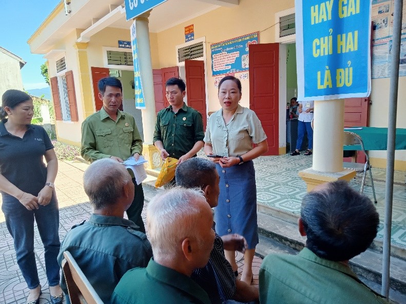 Bà Lương Thị Nối (thứ nhất bên phải), Phó Chủ tịch UBND xã chia sẻ động viên NNCĐDC tại buổi khám bệnh.