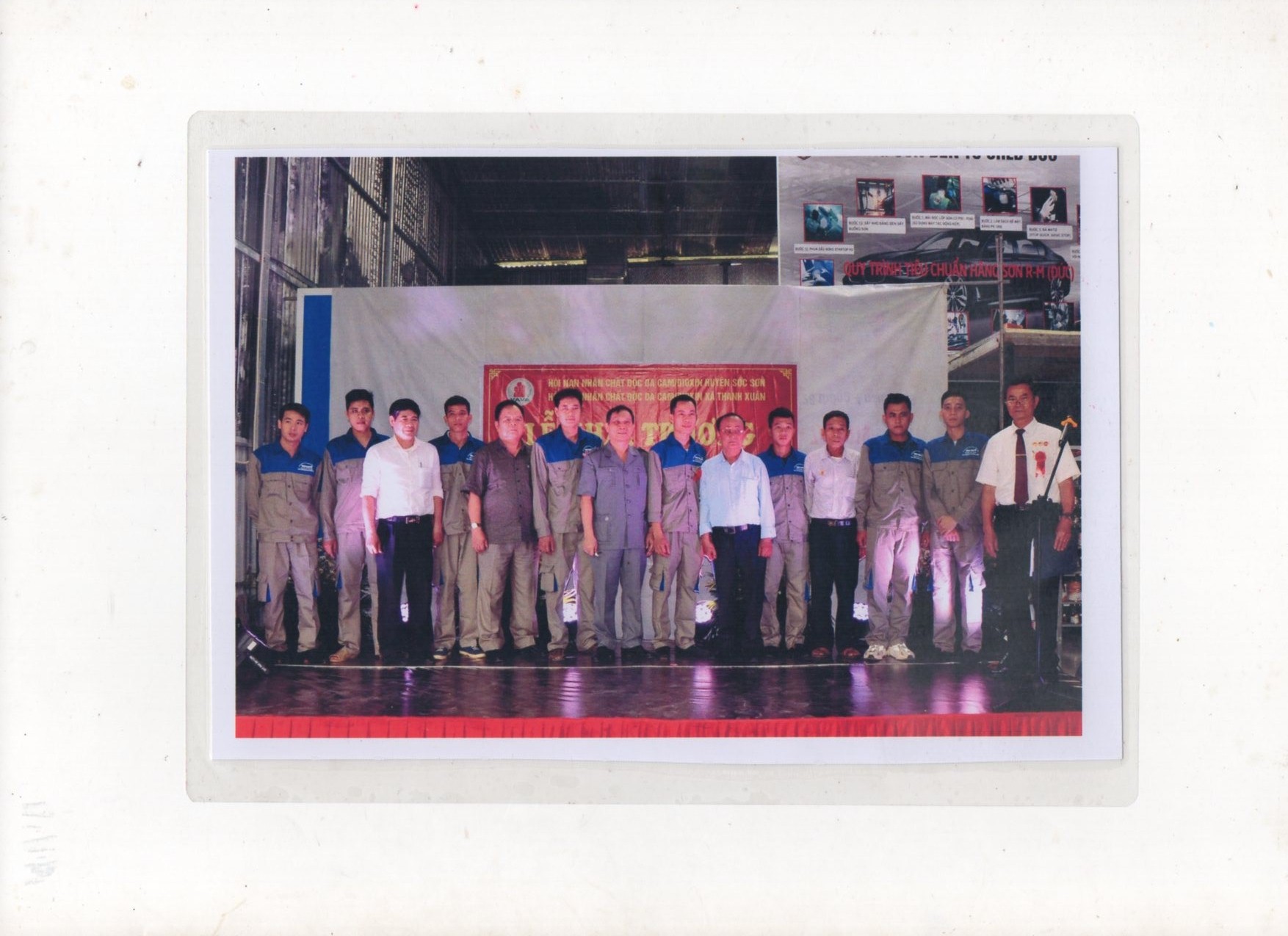 Ông Nguyễn Văn Quang Chủ tịch Hội NNCĐDC/Đioxin thành Phố Hà Nội đứng thứ 7 từ trái sang cùng thường trực Hội TP Hà Nội dự lễ khai trương mô hình HTX GARA ôtô Nguyên Hải xã Thanh Xuân (Sóc Sơn)