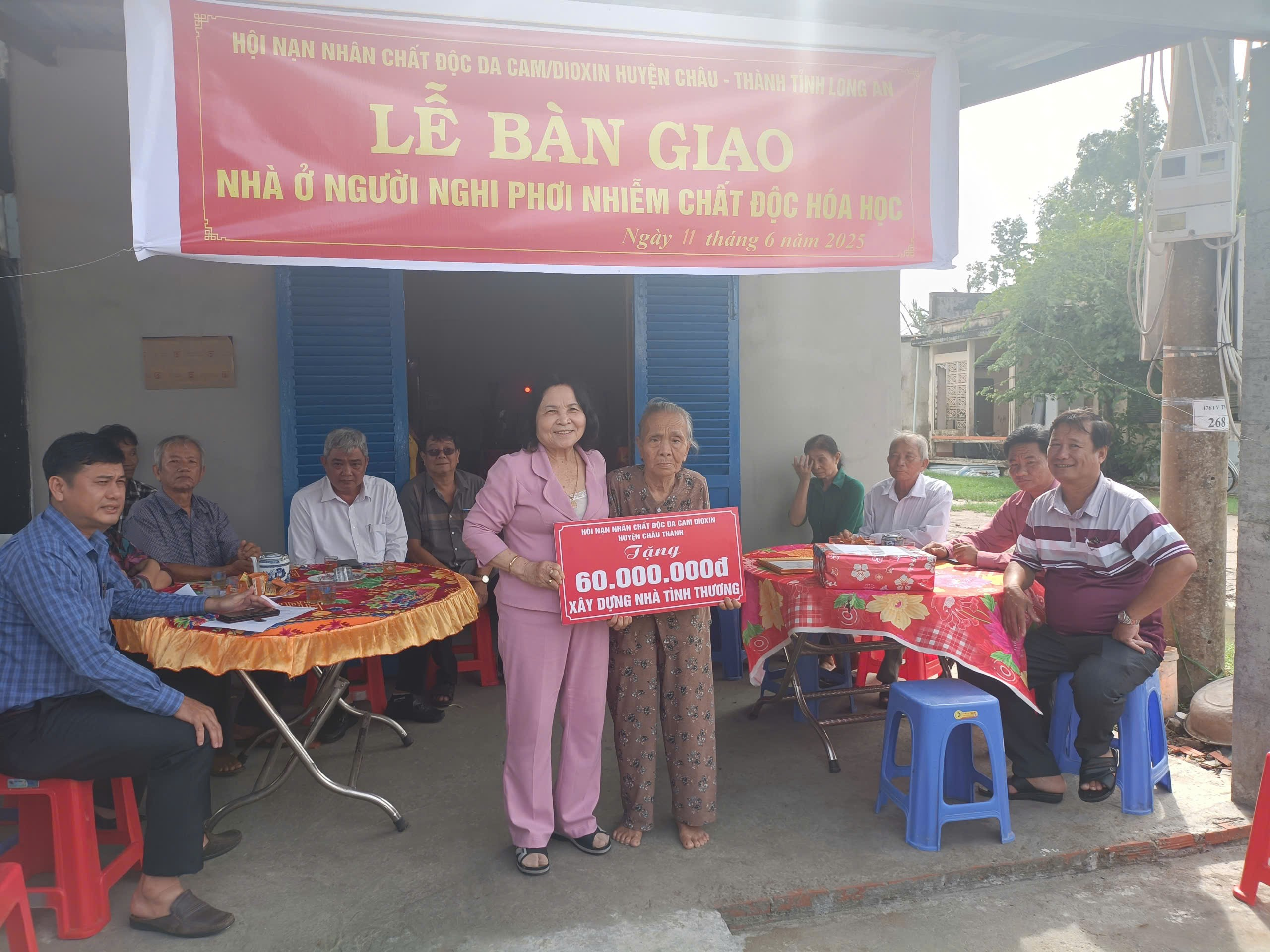 Sáng 11/6/2025, Hội Nạn nhân chất độc da cam/dioxin huyện Châu Thành, tỉnh Long An phối hợp với UBND xã Thuận Mỹ tổ chức bàn giao Nhà tình thương cho gia đình bà Đặng Thị Ánh, ở ấp Bình Trị 1, 81 tuổi, là người nghi bị phơi nhiễm chất độc hóa học trong chiến tranh, sức khỏe yếu nhà ở đã xuống cấp nghiêm trọng. Dự Lễ bàn giao có: ông Phạm Văn Thật, Phó Chủ tịch UBND huyện Châu Thành; bà Nguyễn Thị Hoa, Chủ tịch Hội Nạn nhân chất độc da cam/dioxin huyện. Ngôi nhà được xây dựng bằng nguồn kinh phí do Huyện hội Châu Thành vận động hỗ trợ 60 triệu đồng.