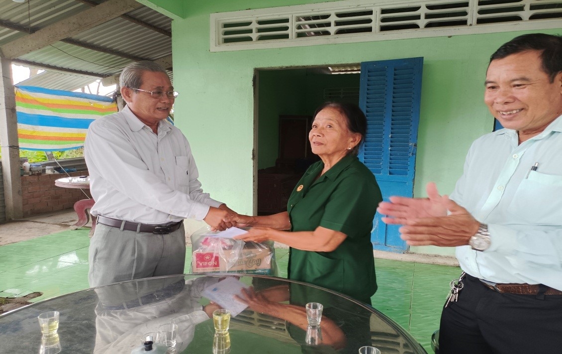 | Ông Nguyễn Hùng, Phó Chủ tịch Tỉnh hội thăm hỏi, động viên, tặng quà gia đình nạn nhân Thạch Vui, cha của Thạch Bích Ngọc |