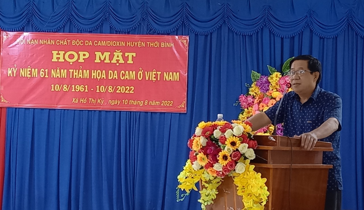 Ông Đỗ Hữu Lực, Chủ tịch Hội NNCĐDC/dioxin huyện Thới Bình, nhắc lại cuộc chiến tranh hóa học do Quân đội Mỹ tiến hành tại Việt Nam, có quy mô lớn nhất, dài nhất và để lại hậu quả thảm khốc nhất trong lịch sử chiến tranh hóa học trên thế giới. Hôm nay chúng ta tổ chức họp mặt Kỷ niệm 61 năm Thảm họa da cam ở Việt Nam và Ngày Vì nạn nhân chất độc da cam 10/8, để tưởng nhớ các nạn nhân chất độc da cam đã từ trần, ghi nhớ công ơn các nạn nhân đã trực tiếp tham gia kháng chiến chống Mỹ cứu nước.