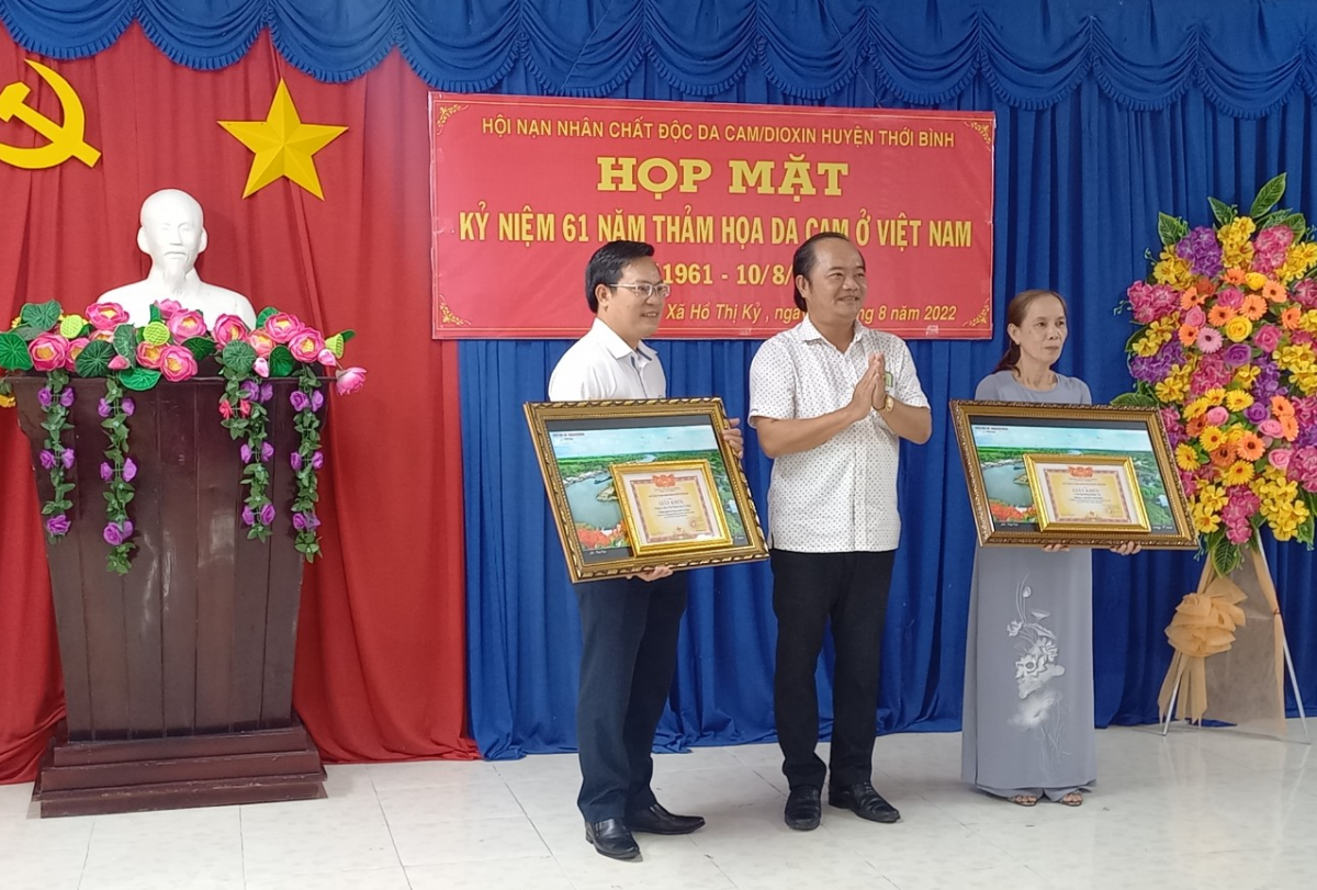 Dịp này, Công ty Bảo Việt Nhân Thọ Cà Mau tài trợ 36 suất quà, Chi hội Hưng Bình Tự, Thới Bình tặng 40 suất gạo cho các nạn nhân chất độc da cam có hoàn cảnh khó khăn trên địa bàn huyện. Ghi nhận và biểu dương những tấm lòng nhân ái của các tổ chức, cá nhân đã tích cực hỗ trợ giúp đỡ nạn nhân chất độc da cam. Chủ tịch UBND huyện Thới Bình tặng Giấy khen cho 2 tập thể trên./.
