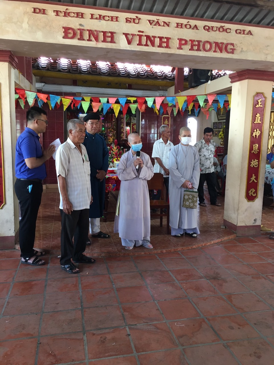 Ban lãnh đạo Chùa Vĩnh Phong và Ban Quản trị Đình Vĩnh Phong chủ trì buổi trao tặng quà |