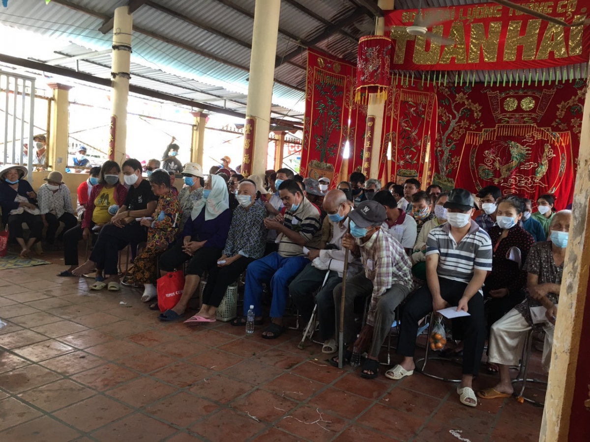 Những người yếu thế chờ nhận quà tại Đình Vĩnh Phong |