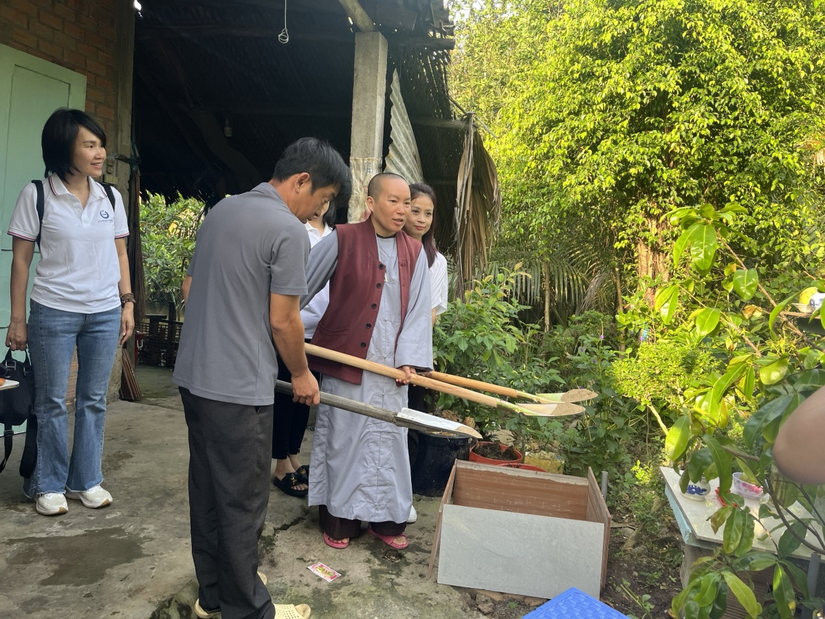 | Chủ tịch MTTQ xã Nhị Thành và sư cô Liên Hiền trao thư Cảm ơn cho đại diện Quỹ Hành trình xanh Thành phố Hồ Chí Minh |