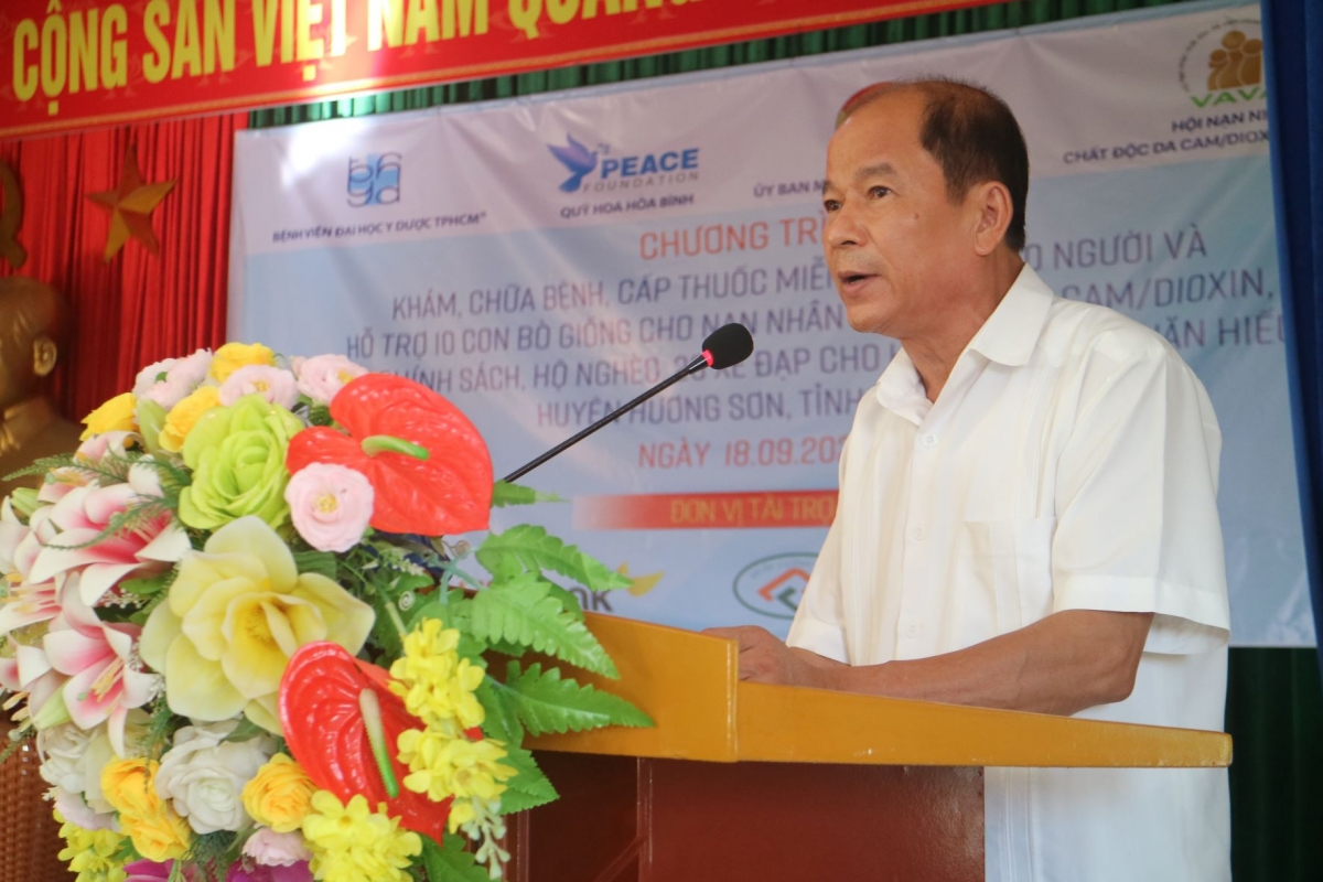 Sáng 18/9, tại huyện Hương Sơn, tỉnh Hà Tĩnh, Quỹ Hoa Hòa Bình, Bệnh viện Đại học Y dược Thành phố Hồ Chí Minh cùng với Hội NNCĐDC/dioxin Việt Nam tổ chức Chương trình khám chữa bệnh, cấp thuốc miễn phí, tặng bò giống sinh sản và xe đạp cho nạn nhân chất độc da cam và người nghèo.
