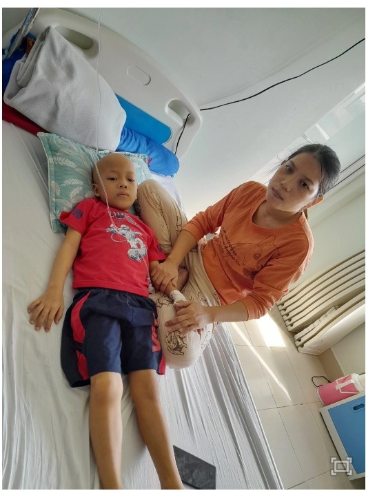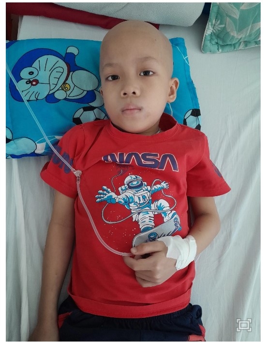 Suốt một năm gồng mình gánh chịu căn bệnh hiểm nghèo khiến sức khỏe bé Quân rất yếu, khuôn mặt bơ phờ, mệt mỏi, mái đầu trọc lóc. Đứa trẻ nằm trên giường truyền dịch, thi thoảng lại hỏi mẹ "Mình sắp được về nhà chưa?"; "Tóc con bao giờ mới mọc lại?"; "Con muốn về đi học"… Từng lời nói của đứa trẻ bất hạnh làm trái tim người mẹ đau nhói. Thương con, chị Hường chỉ biết nắm chặt đôi tay nhỏ bé vỗ về, động viên con cố gắng điều trị để sớm khỏe mạnh trở về nhà.