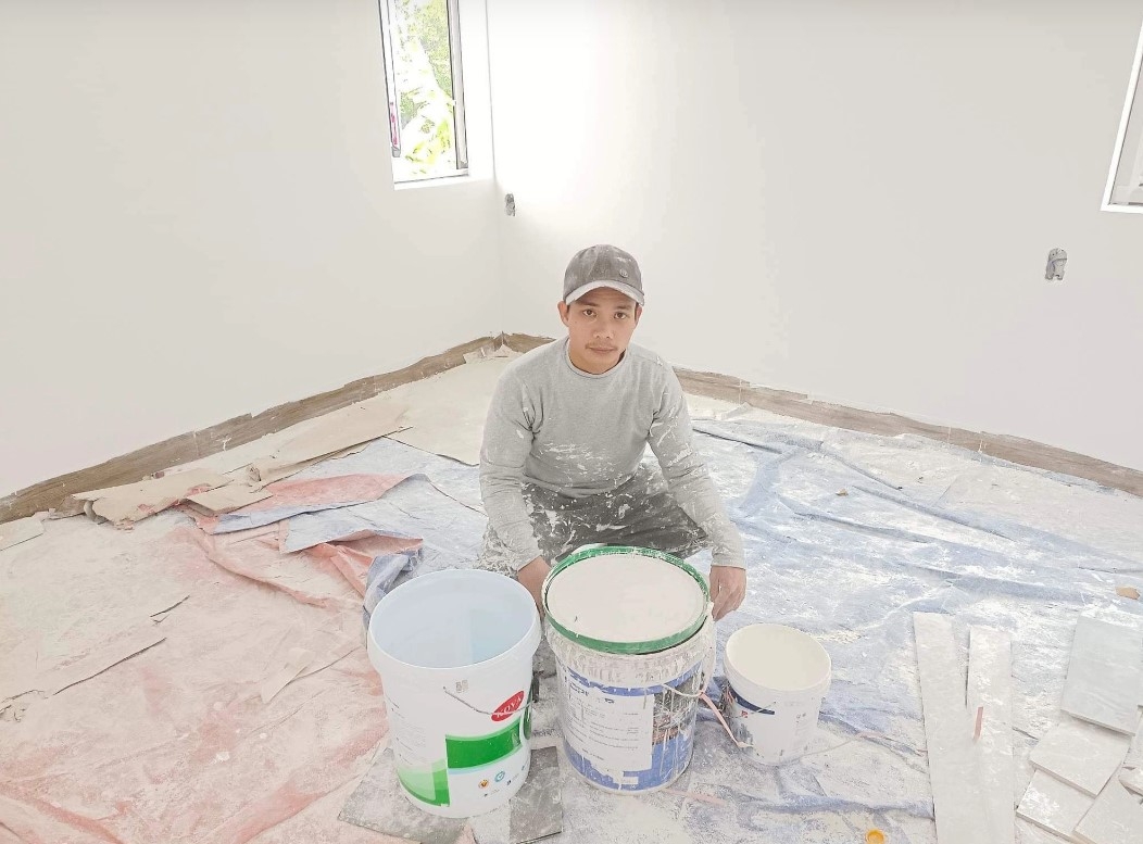 | Ngoài nghề thợ sơn, anh Huế còn tranh thủ bươn chải ngược xuôi để lo cho cả gia đình, chữa bệnh cho con. |