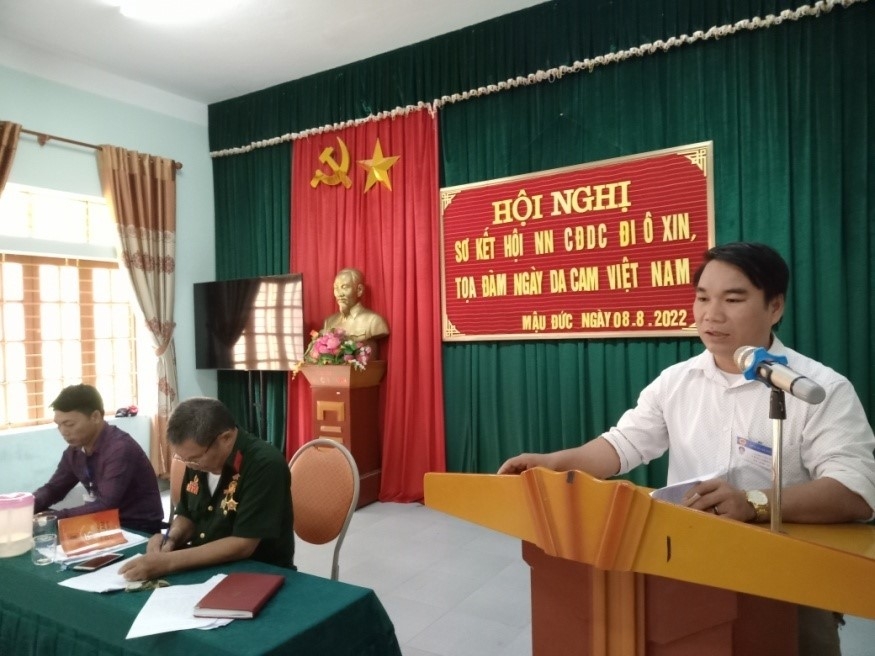 Sáng 08/8/2022, Hội Nạn nhân chất độc da cam/dioxin xã Mậu Đức huyện Con Cuông, tỉnh Nghệ An tổ chức Hội nghị Sơ kết công tác 6 tháng đầu năm, phương hướng nhiệm vụ 6 tháng cuối năm 2022 và tọa đàm kỷ niệm 61 năm Thảm họa da cam ở Việt Nam (10/8/1961 – 10/8/2022). Đến dự, có Thường trực Hội NNCĐDC/dioxin huyện Con Cuông; Thường trực Đảng ủy, HĐND, UBND, UB MTTQ và lãnh đạo các tổ chức đoàn thể chính trị xã hội; Bí Thư chi bộ các thôn, bản. Hội Nạn nhân chất độc da cam/dioxin xã Mậu Đức có 20 hội viên, trong đó có 14 hội viên là nạn nhân trực tiếp và 6 hội viên là nạn nhân gián tiếp.
