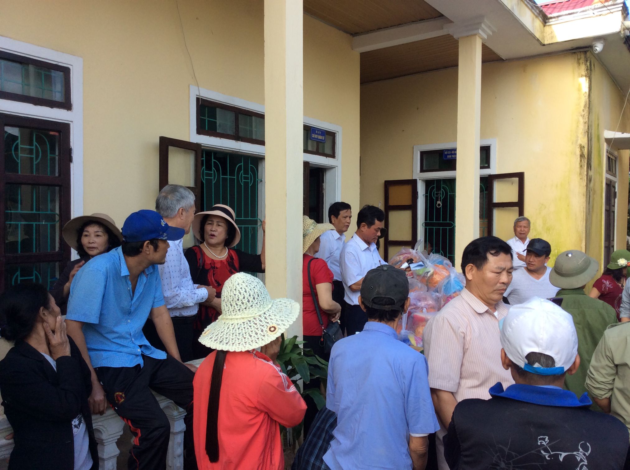 Bà con vùng "rốn lũ" Tuyên Hóa chờ nhận những phần quà giàu nghĩa tình từ tỉnh Lâm Đồng xa xôi gửi đến.