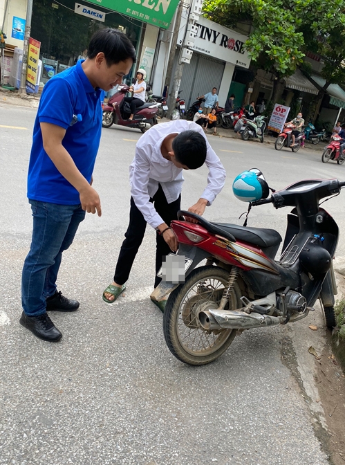 Được lực lượng chức năng giúp đỡ, 2 thanh niên vẫn đến muộn 25 phút so với thời gian bắt đầu làm bài thi. (Ảnh: Dân Việt)