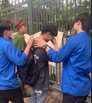 Nam sinh ôm mặt khóc nức nở vì không được vào thi môn cuối. (Ảnh: Chụp màn hình TikTok T.Q.H.D) |