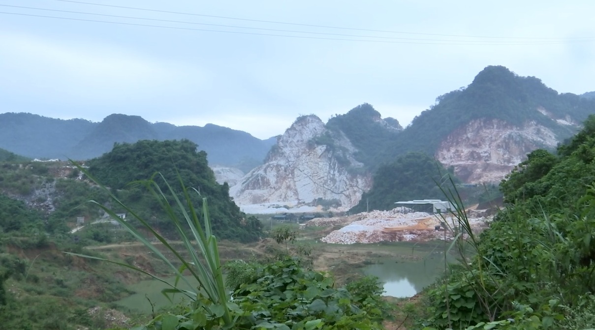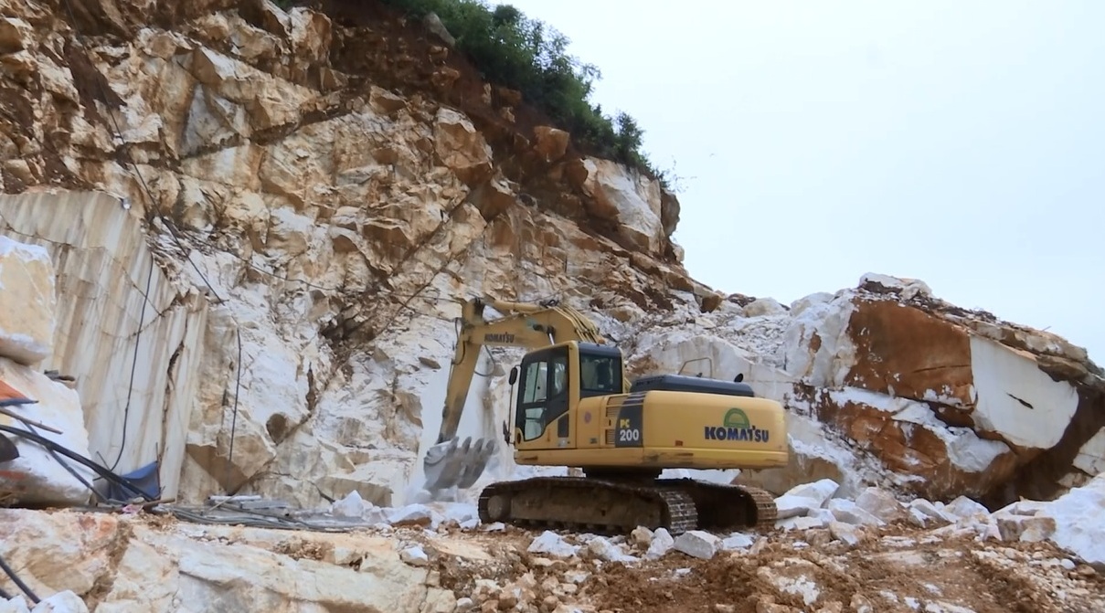 Một khung cảnh khai thác đá trắng tại xã Châu Cường