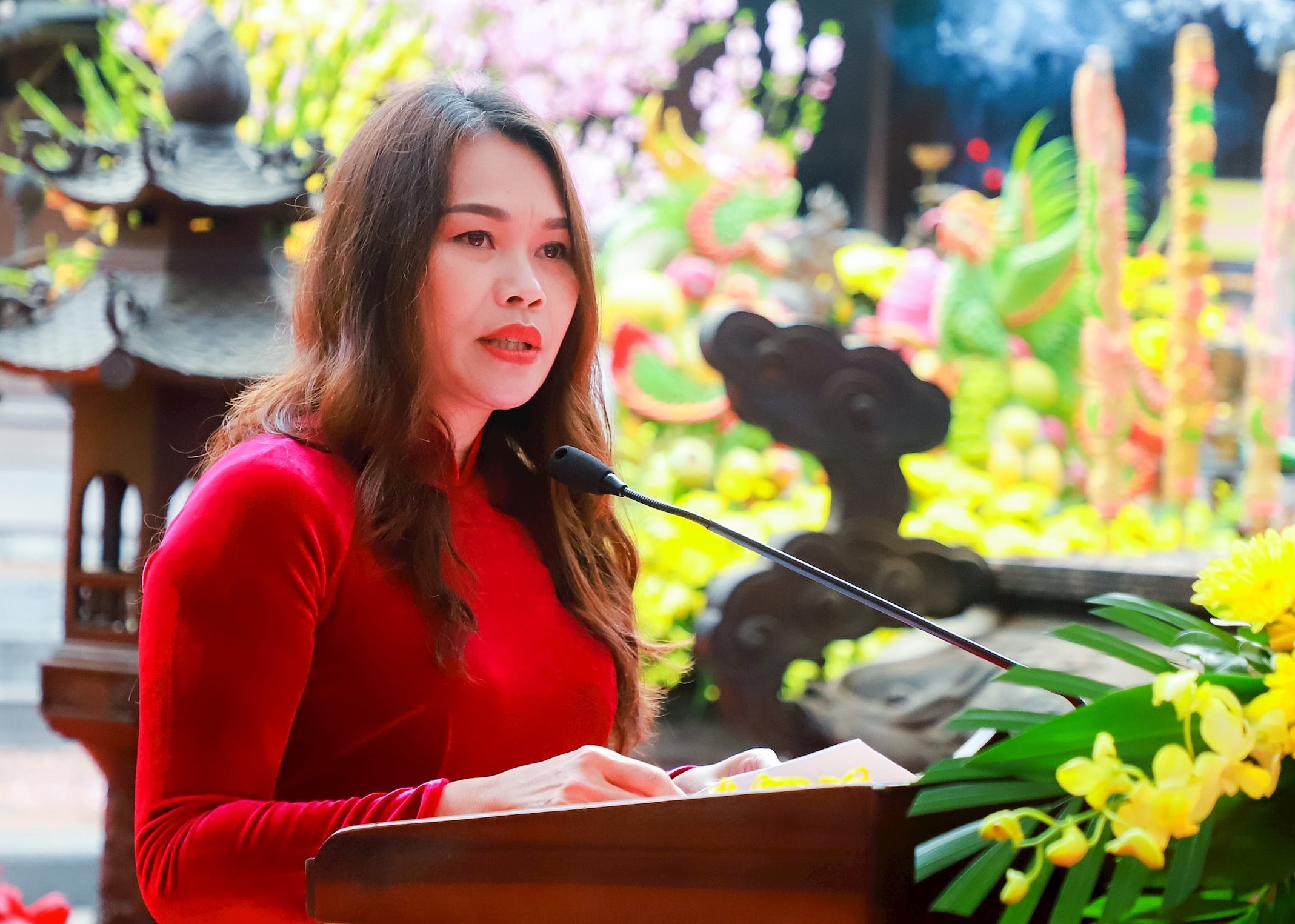 Bà Trần Thị Cẩm Tú, Phó chủ tịch UBND thành phố Vinh đọc diễn văn kỷ niệm