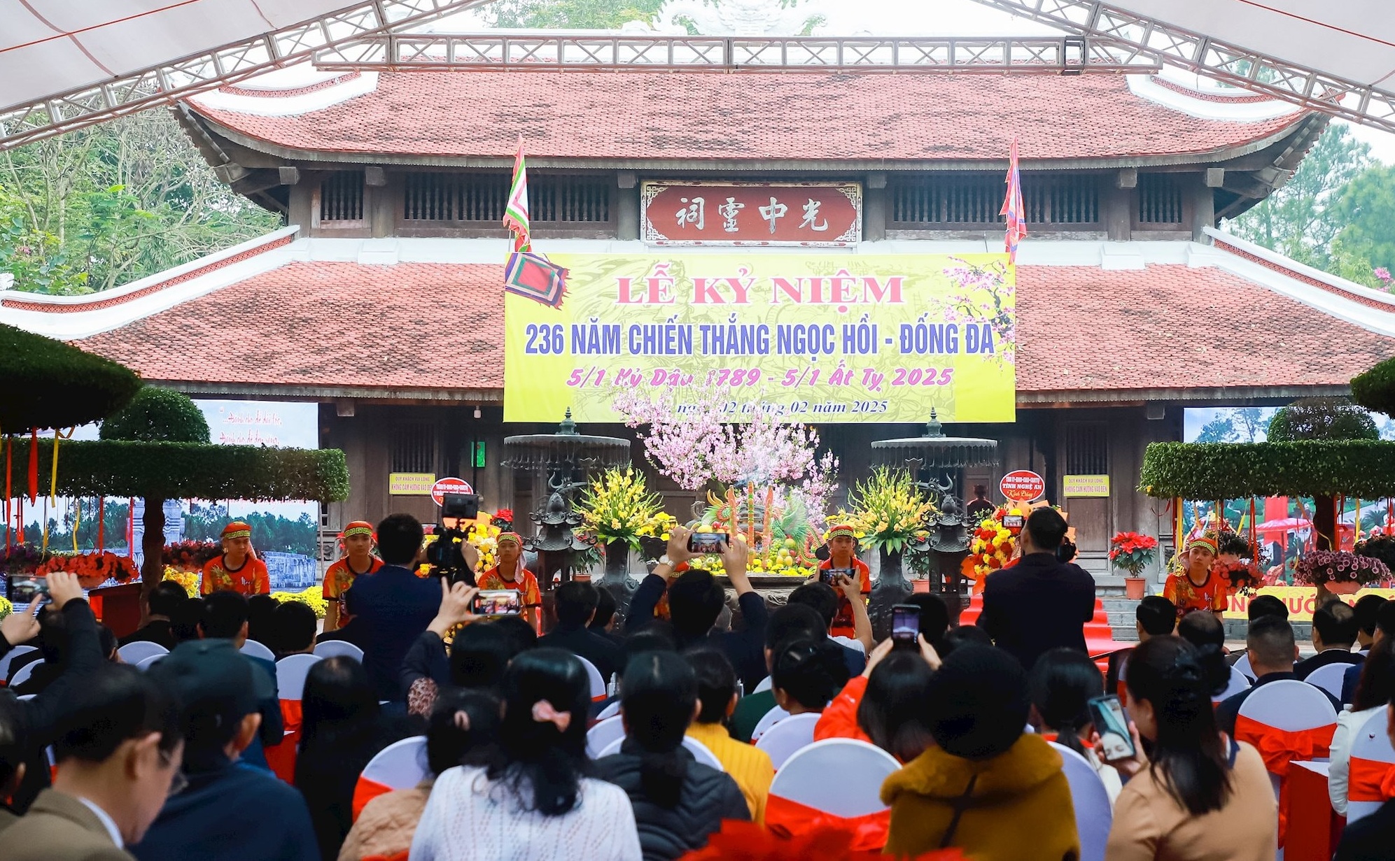 Trong không khí vui tươi phấn khởi, mừng Đảng mừng xuân, các đại biểu, cùng nhân dân đã thành kính dâng hoa, dâng hương tưởng niệm Hoàng đế Quang Trung; nguyện phát huy truyền thống yêu nước, noi gương các vị anh hùng của dân tộc, ra sức phấn đấu chung tay, góp sức xây dựng quê hương, đất nước ngày càng giàu đẹp, văn minh.