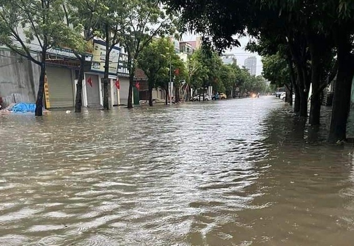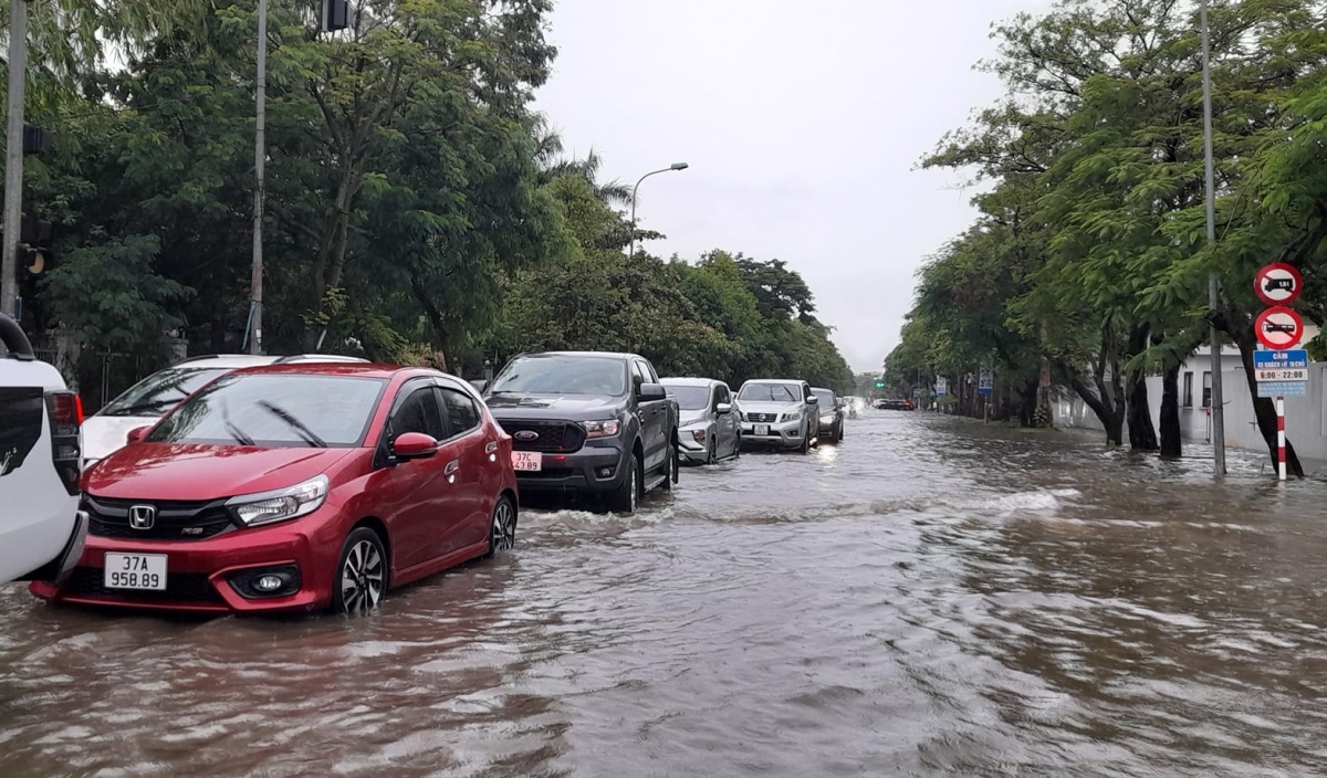Tại thành phố Vinh mưa lớn kéo dài từ tối 8/9 đến chiều tối ngày 9/9 đã khiến nhiều tuyến phố bị ngập nặng. Các tuyến đường Phạm Đình Toái, Lý Thường Kiệt ngập sâu hơn nửa mét. Các phương tiện di chuyển trên Đường Hồ Hán Thương gặp nhiều khó khăn, ách tắc cục bộ vào giờ cao điểm.