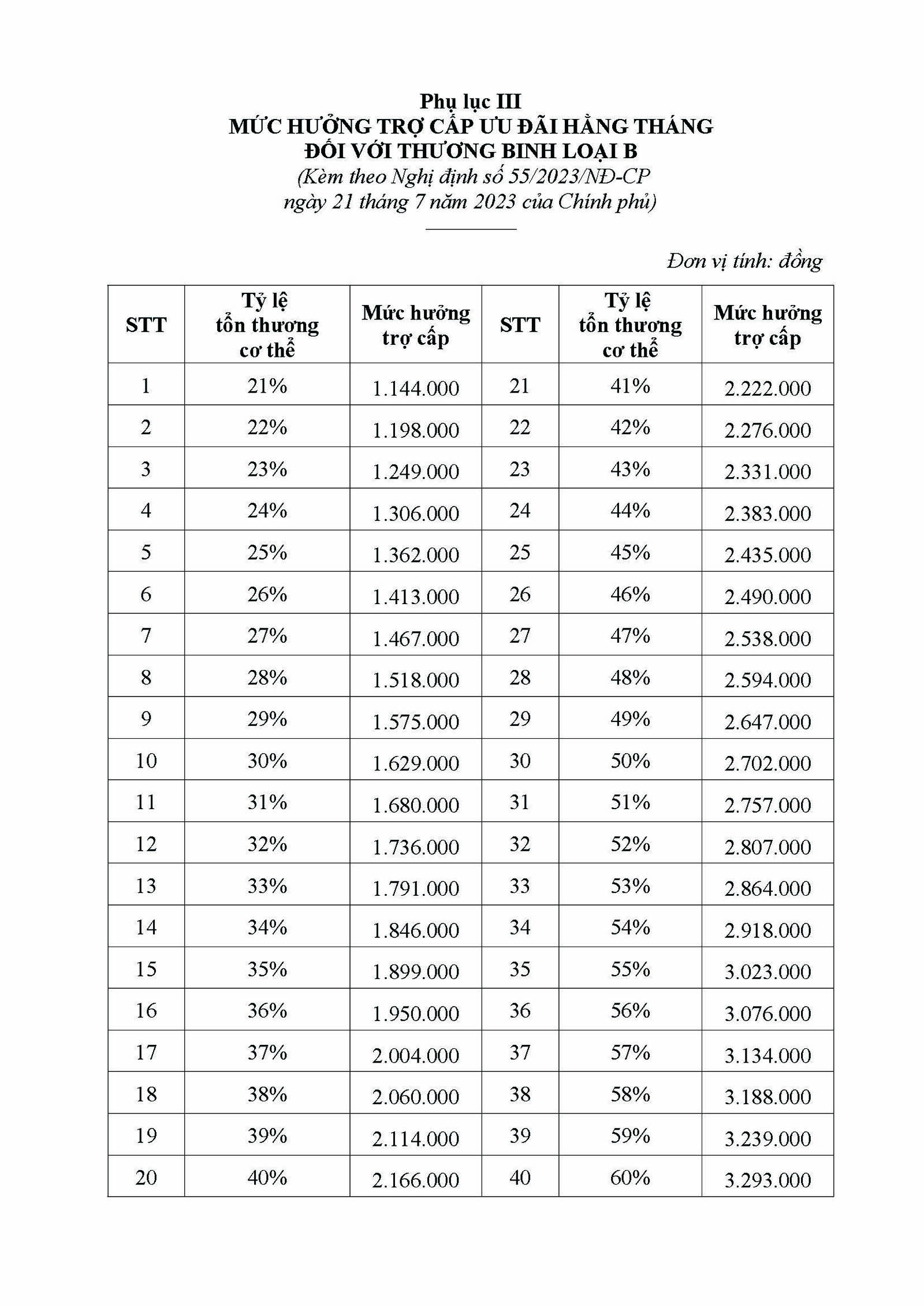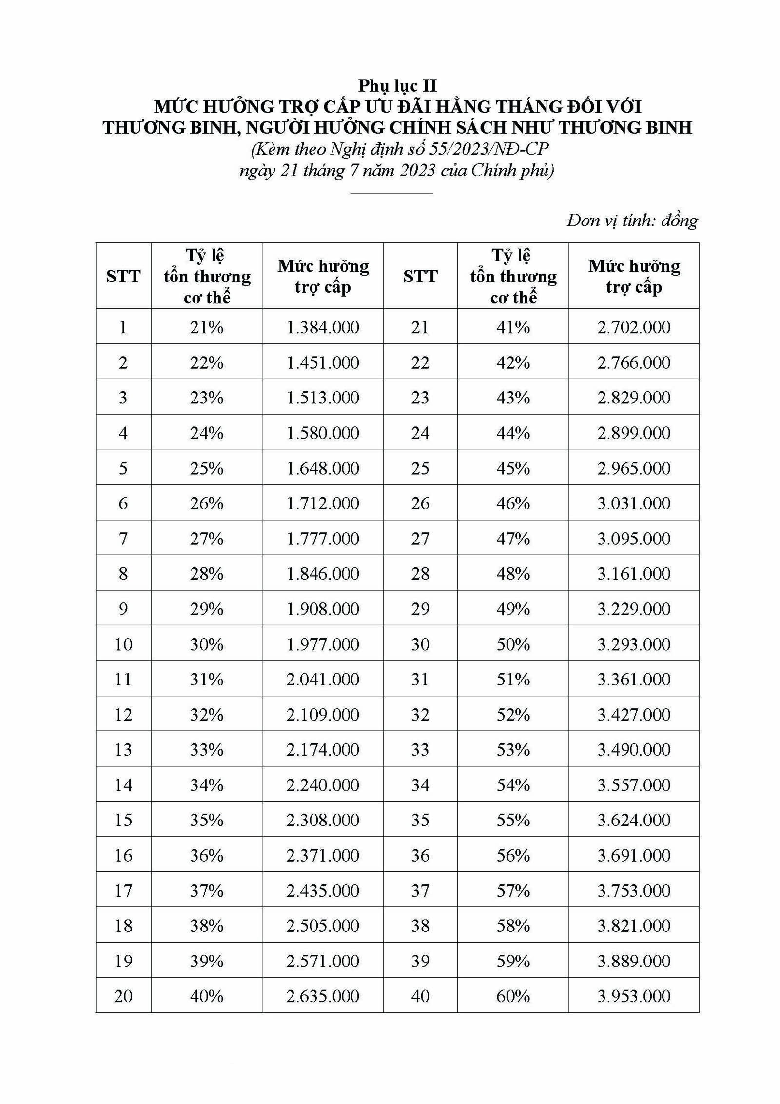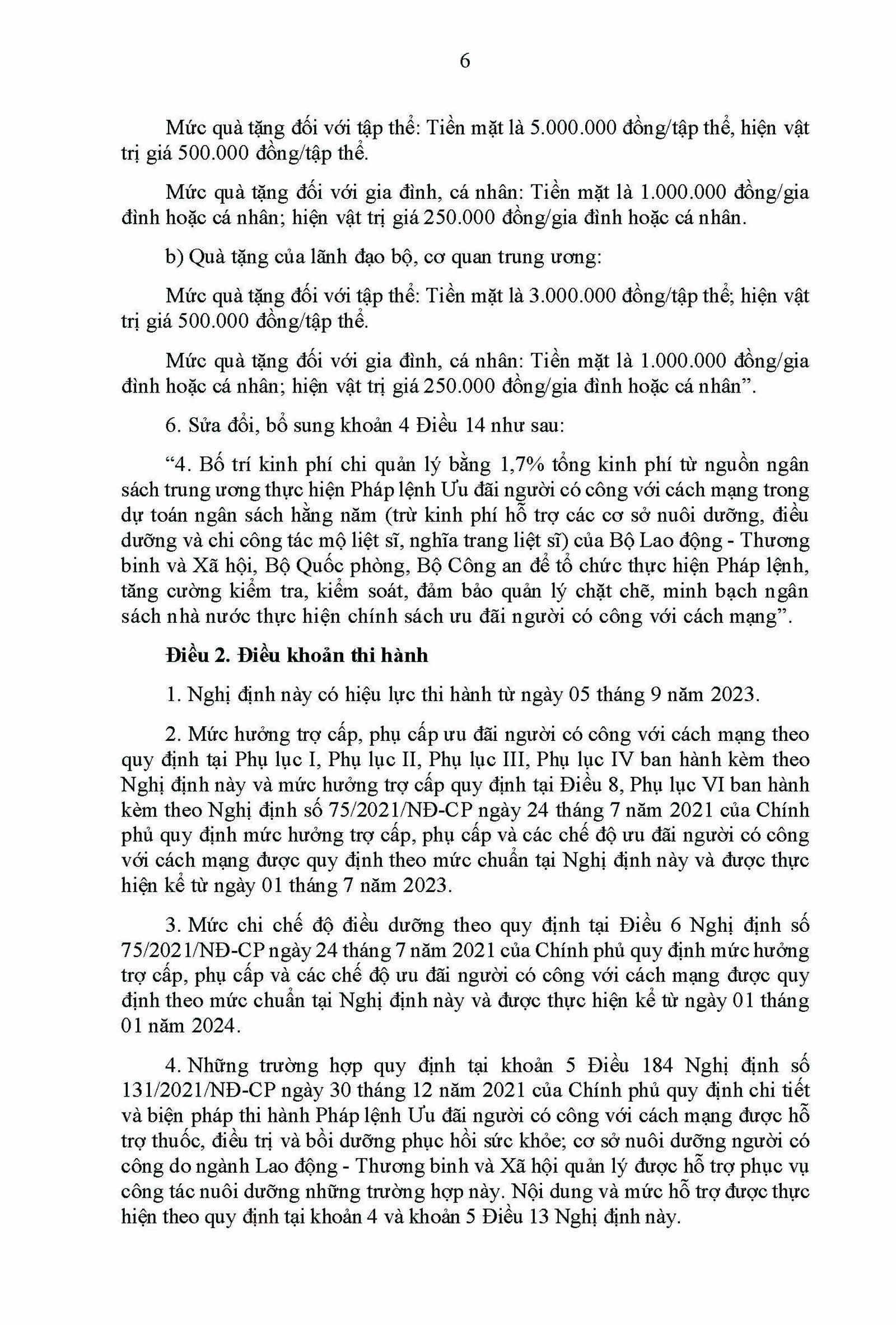 Nghị định 55/2023/NĐ-CP ngày 21/7/2023 của Chính phủ về sửa đổi, bổ sung một số điều của Nghị định 75/2021/NĐ-CP ngày 24/7/2021 của Chính phủ quy định mức hưởng trợ cấp, phụ cấp và các chế độ ưu đãi người có công với cách mạng