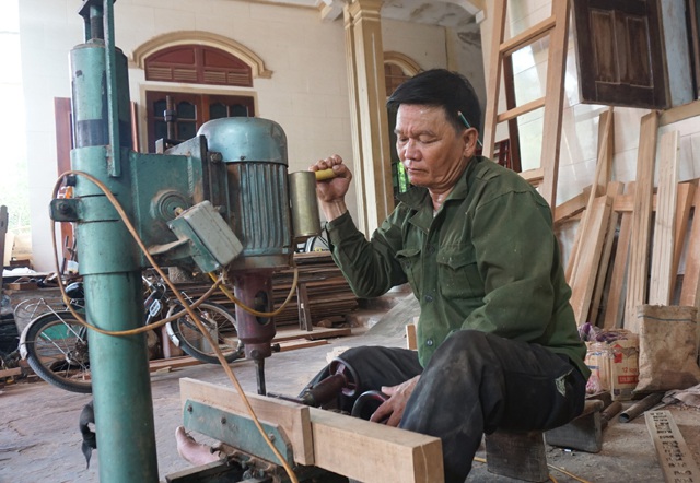 Tiếng cưa máy, đục đẽo vẫn vang lên đều đặn trước căn nhà hai tầng vào loại khang trang nhất vùng. Cựu chiến binh Phạm Bá Cảnh (SN 1953, trú xóm 2A, xã Hưng Yên Bắc, Hưng Nguyên, Nghệ An) đi lại như con thoi, chỉ đạo tốp thợ này, hướng dẫn người thợ kia hoàn thiện các sản phẩm để kịp giao cho khách hàng.