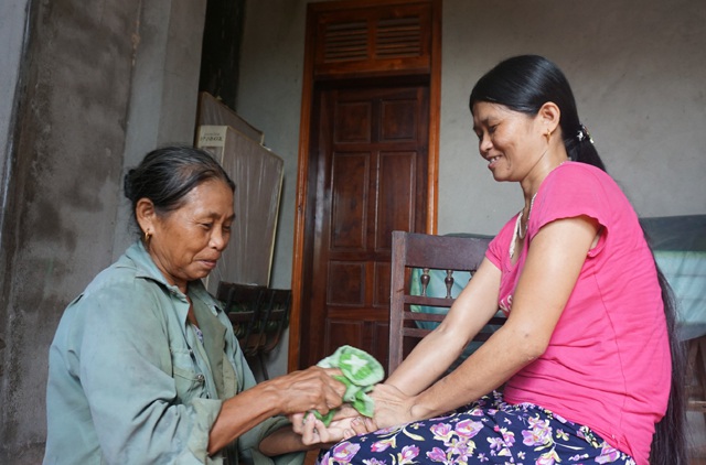 Bà Nguyễn Thị Vân (SN 1957) kéo tà áo lên quệt nước mắt hòa lẫn với mồ hôi, kể: “Hai đứa yếu lắm, không chịu ăn uống chi cả. Nó điên lên chửi suốt ngày, suốt đêm. Bố mẹ cho uống thuốc, tắm rửa, vệ sinh… có khi còn bị chúng đánh. Nhiều khi nhìn con mà thương, mà tủi cho mình.