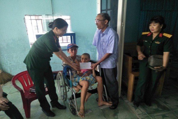 Trung tâm Xử lý Bom mìn và Môi trường - Quân khu 5 trao tiền trợ dưỡng thường xuyên hàng tháng cho gia đình ông Nguyễn Hữu Hùng